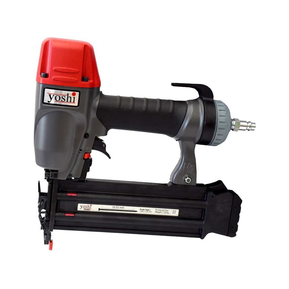 Пневматический штифтозабивной пистолет Yoshi FN1850 предназначен для сборки изделий из дерева и декоративной отделки, где требуется высокая точность. Идеально подходит для производства окон, дверей, мягкой и корпусной мебели, а также выполнения столярных и монтажных работ.Работает с штифтами типа J длиной от 16 до 55 мм, что обеспечивает универсальность применения. Небольшая масса снижает утомляемость при длительном использовании и позволяет легко управлять инструментом для точной установки крепежа.Основные сферы применения:Производство окон и дверей: сборка рам, установка декоративных элементов.Мебельная промышленность: изготовление мягкой и корпусной мебели.Декоративная отделка: крепление наличников, плинтусов, панелей.Столярные работы: соединение деревянных конструкций и элементов.Ремонт и реконструкция: ремонт изделий из дерева и декоративных материалов.Бренд "Yoshi" входит в комплекс пневматических решений компании "ForEst" и отвечает за разработку и поставку пневматических инструментов и компрессорного оборудования. Тесное сотрудничество с "ForEst" позволяет оптимизировать инструменты для работы как с отечественной, так и с импортной крепёжной продукцией, обеспечивая высокую скорость, точность и надёжность. Инструменты Yoshi отличаются продуманным дизайном, эргономичностью и долговечностью, что делает их востребованными как на крупных производствах, так и для личного использования при выполнении бытовых задач и позволяет создавать комплексные пневматические решения.