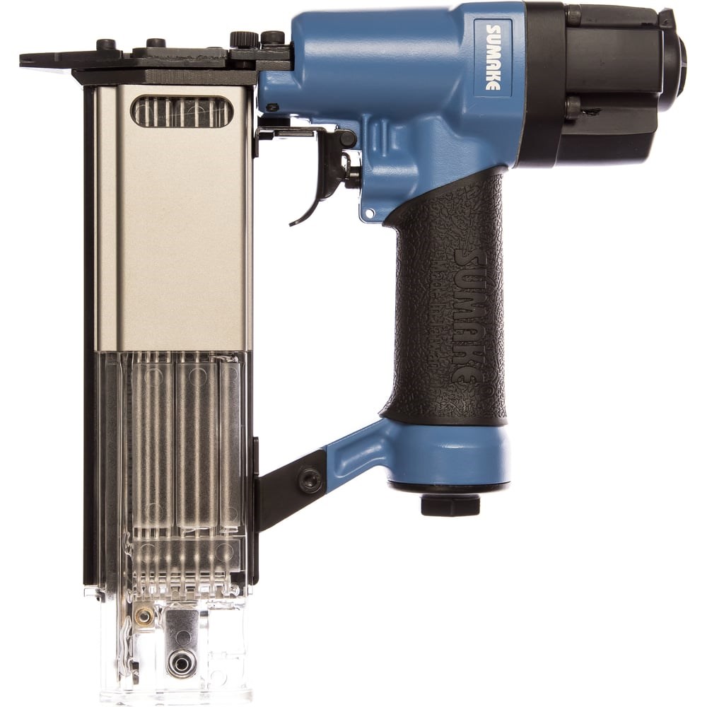 Пневмостеплер Sumake P0.6/50 8096230 используется при отделке помещений, в строительных работах, при сборке мебели. Рукоять удобной формы снабжена нескользящим покрытием для надежного удержания инструмента. В качестве оснастки используются шпильки длиной 15-50 мм. Магазин вмещает до 200 штук.