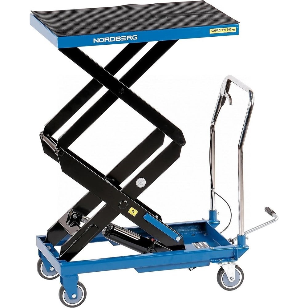 Гидравлический подъемный стол, двойные ножницы, NORDBERG N3T301 – подъемное оборудование для диагностических или ремонтных работ в автосервисах и на транспортных предприятиях. Функционал Предназначен для подъема и удерживания, а также перемещения грузов весом до 300 кг: узлов и агрегатов транспортных и иных средств с целью облегчить работу специалистов, выполняющих монтаж/демонтаж, ремонт и обслуживание в цеху или рабочей площадке. Преимущества Высота подъема до 125 см. Совмещение платформенной тележки, ножничного подъемного механизма и рабочего стола в одном устройстве. Ножной гидравлический привод позволяет быстро и эффективно поднимать груз без лишнего физического усилия со стороны оператора - его руки остаются свободными. Опускание груза с помощью нажатия рычага на ручке подъемного стола гарантирует плавное и контролируемое опускание стола. Эластичный съемный резиновый защитный коврик гарантирует безопасное расположение агрегатов на рабочей поверхности стола. Удобство использования Легкость управления с помощью рукоятки с рычагом для спуска платформ Мобильность благодаря износостойким полиуретановым колесам, снабженным стопорами Платформенная тележка с подъемным столом с ножной педалью NORDBERG N3T301 обеспечит комфортную работу на нужной высоте при обслуживании легкового и грузового транспорта в автосервисах и на СТО.