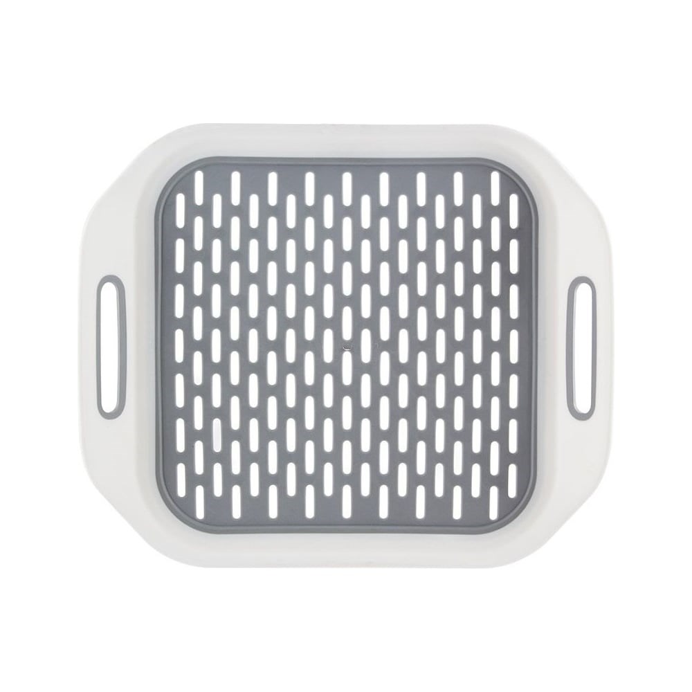 Поднос-сетка для раковины Рыжий кот Vassoio, размер 36.5x31x6 см, 004662 предназначен для удобного мытья продуктов. Представляет собой поднос с дном в виде сетки, имеет удобные ручки. Изделие изготовлено из качественных материалов. Габаритные размеры подноса составляют 365х310х60 мм. Изделие выдерживает нагрузку до 10 кг.