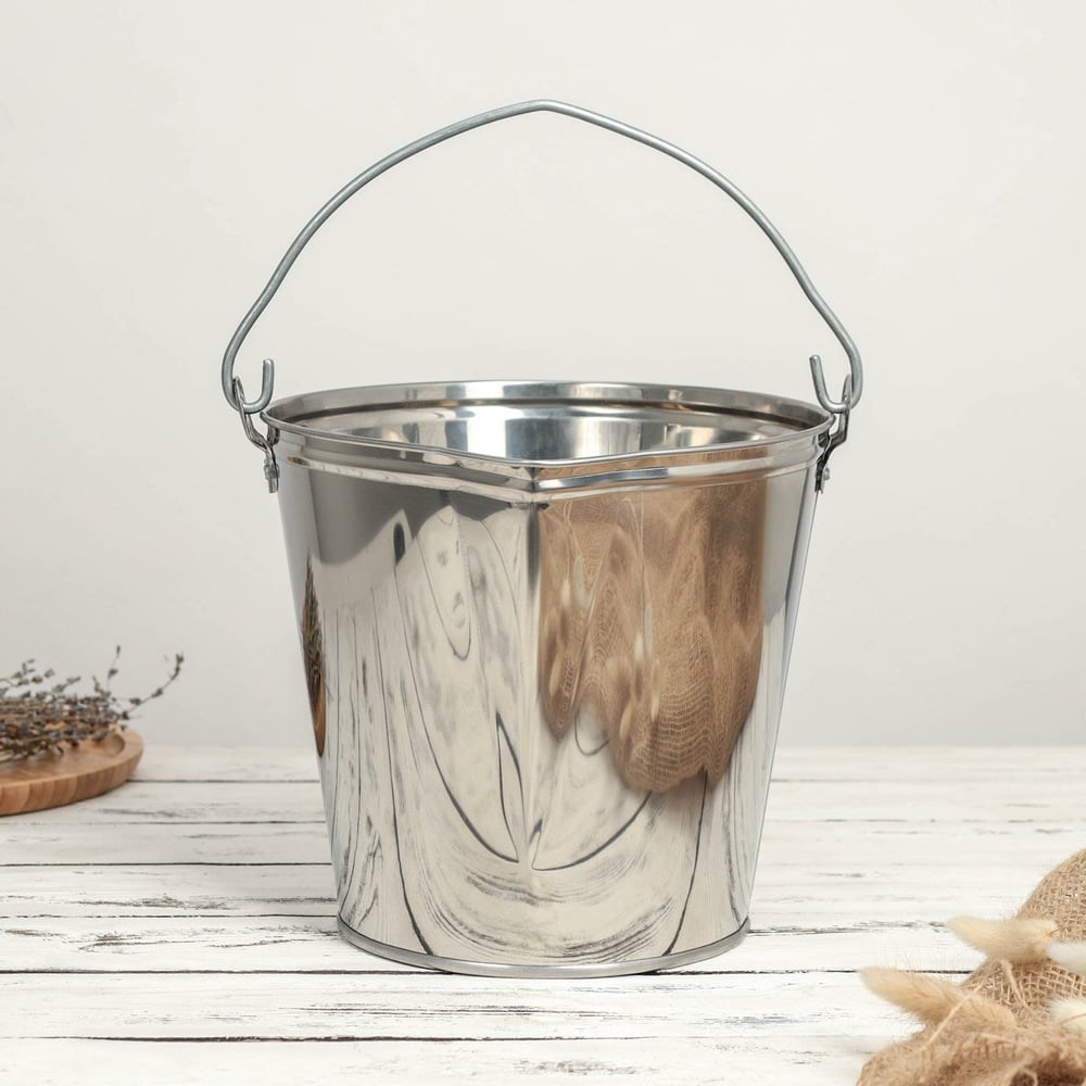 Подойник СИМАЛЕНД 7 л, нержавеющая сталь 1105538 подходит для использования в животноводстве. Изготовлен из нержавеющей стали, благодаря чему отличается прочностью, устойчивостью к образованию коррозии и механическим повреждениям. Обладает нейтральностью к пищевым продуктам. Ручка с надёжным креплением облегчает переноску. Носик обеспечивает удобство слива жидкости.