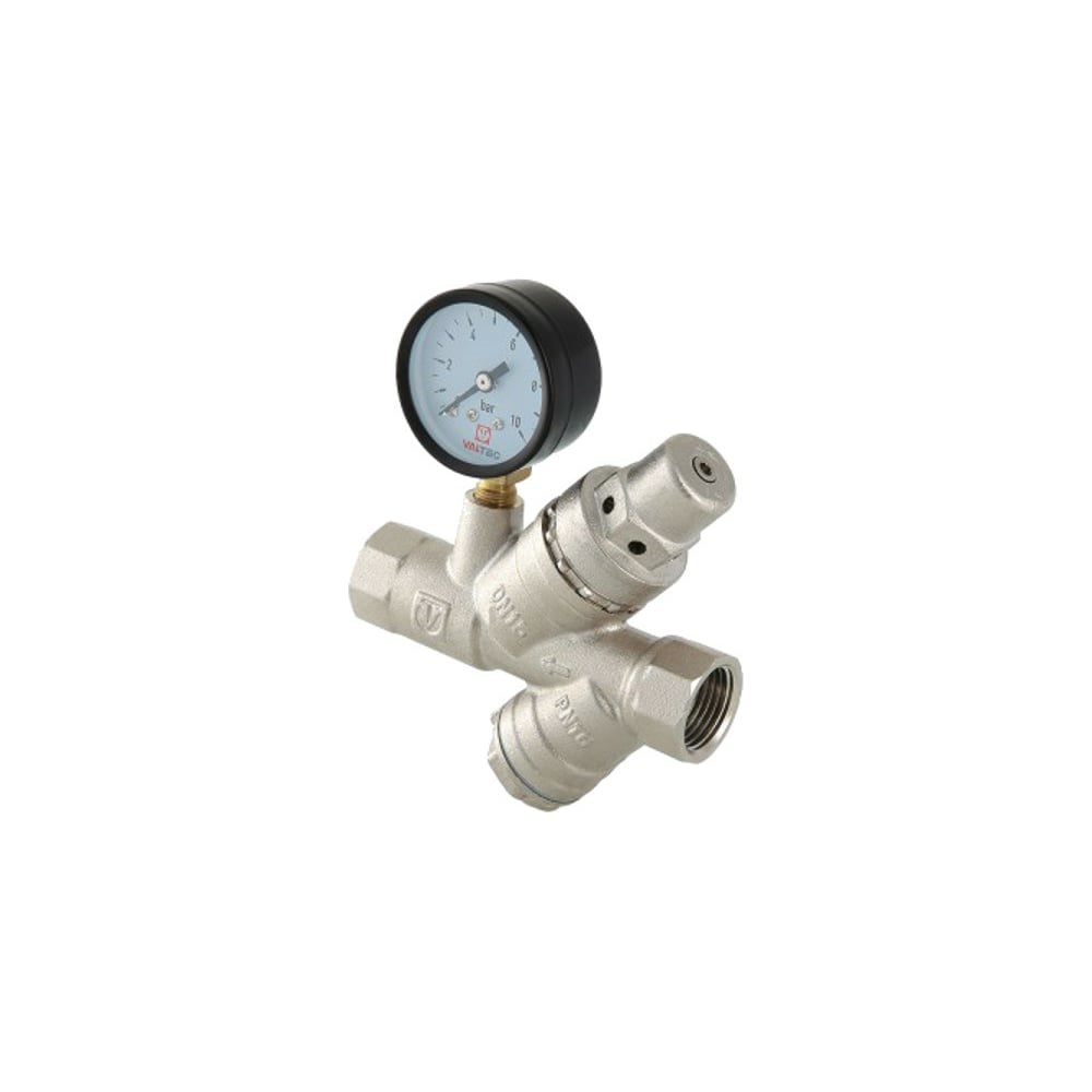 Подпиточный клапан Valtec VT.515.N.04 предназначен для поддержания необходимого количества теплоносителя в системах автономного водяного отопления зданий. Оснащен манометром, фильтром механической очистки, поршневым редуктором давления, обратным клапаном. В случае снижения давления клапан открывается для восполнения потерь теплоносителя системы. Сетчатый фильтр из нержавеющей стали предназначен для очистки поступающей воды от механических частиц. Манометр позволяет контролировать давление в системе. Корпус клапана изготовлен из латуни CW617N. Технические характеристики: размер ячеек сетчатого фильтроэлемента - 300 мкм; диапазон шкалы манометра - 1-10 бар; класс точности - 3; присоединительная резьба патрубков - G 1/2"; максимальная рабочая температура - 130°С; максимальное рабочее давление - 16 бар.