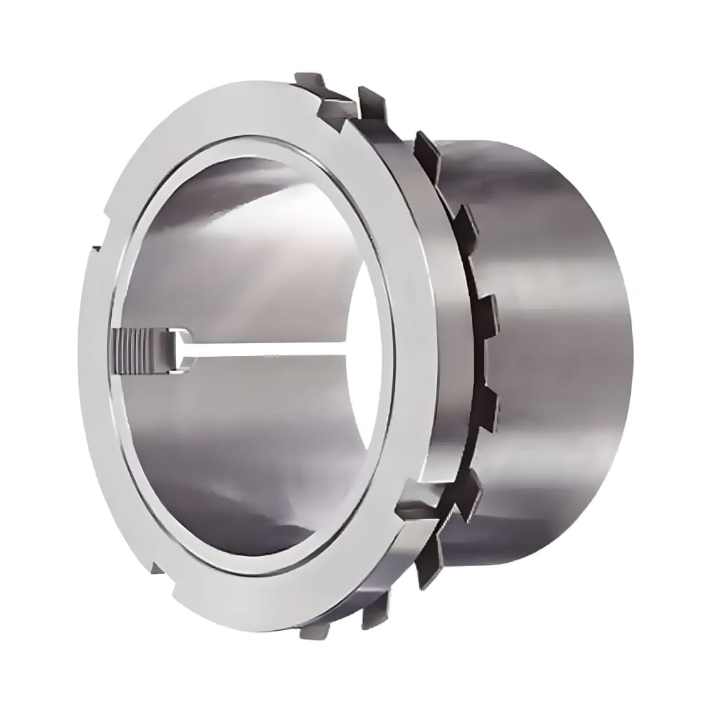 Закрепительная втулка представляет собой самое распространённое устройство для фиксации подшипников с коническим отверстием на цилиндрических посадочных местах. Размеры втулки рассчитаны в соответствии со стандартом ISO. Состоит из разрезной втулки, стопорной гайки и фиксирующего устройства (стопорная шайба). Может компенсировать погрешность вала, поэтому диаметр вала может иметь более широкие допуски, чем посадочные места подшипника с цилиндрическим отверстием. Однако геометрические допуски должны иметь узкие пределы, поскольку от них напрямую зависит качество позиционирования вала и уровень вибрации. Внимание! Иллюстративное фото! Параметры товары указаны в таблице технических характеристик.