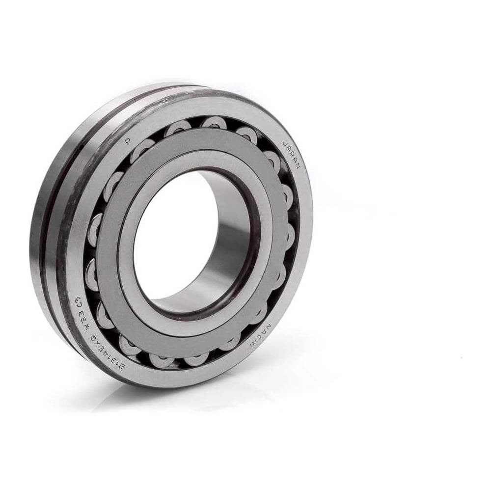 Сферические роликоподшипники имеют два ряда роликов с общей сферической дорожкой качения в наружном кольце. Две дорожки качения внутреннего кольца расположены под углом относительно оси подшипника. Эти подшипники являются самоустанавливающимися. Сферические двухрядные роликоподшипники, способны нести высокую радиальную нагрузку, конструктивно достигнута возможность работы с отклонением соосности вала(перекос внутреннего кольца относительно внешнего) до 2,5 градусов и соответственно не чувствительны к ошибкам в соосности вала и корпуса, а также к изгибу вала. Внутренняя конструкция сферических роликоподшипников отличается в зависимости от серии и типоразмера. Сферические роликоподшипники могут быть с цилиндрическим или коническим отверстием, данный тип изделия выполнен с цилиндрическим посадочным отверстием.