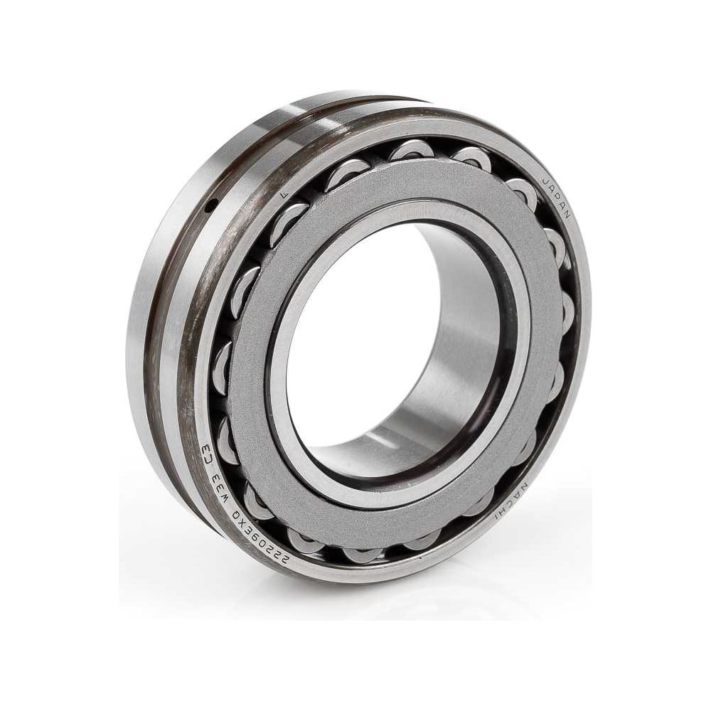 Сферические роликоподшипники имеют два ряда роликов с общей сферической дорожкой качения в наружном кольце. Две дорожки качения внутреннего кольца расположены под углом относительно оси подшипника. Эти подшипники являются самоустанавливающимися. Сферические двухрядные роликоподшипники, способны нести высокую радиальную нагрузку, конструктивно достигнута возможность работы с отклонением соосности вала(перекос внутреннего кольца относительно внешнего) до 2,5 градусов и соответственно не чувствительны к ошибкам в соосности вала и корпуса, а также к изгибу вала. Внутренняя конструкция сферических роликоподшипников отличается в зависимости от серии и типоразмера. Сферические роликоподшипники могут быть с цилиндрическим или коническим отверстием, данный тип изделия выполнен с цилиндрическим посадочным отверстием.