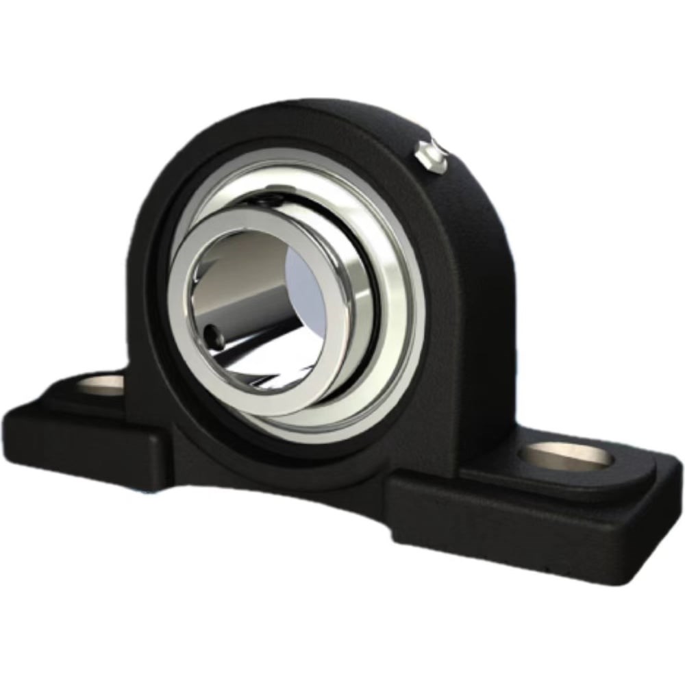 Подшипниковый узел типа UCP, стационарный, с литым корпусом. Подшипниковый узел типа UCP состоит из однорядного шарикового подшипника типа UC с двумя уплотнениями и корпуса типа P из высококачественного чугуна. Наружная поверхность подшипника и внутренняя поверхность корпуса имеют сферическую форму, что обеспечивает самоцентровку подшипника в корпусе при монтаже. Внутреннее кольцо подшипника закрепляется на вал в двух местах стопорными винтами. Конструкция подшипникового узла предусматривает возможность повторного смазывания.