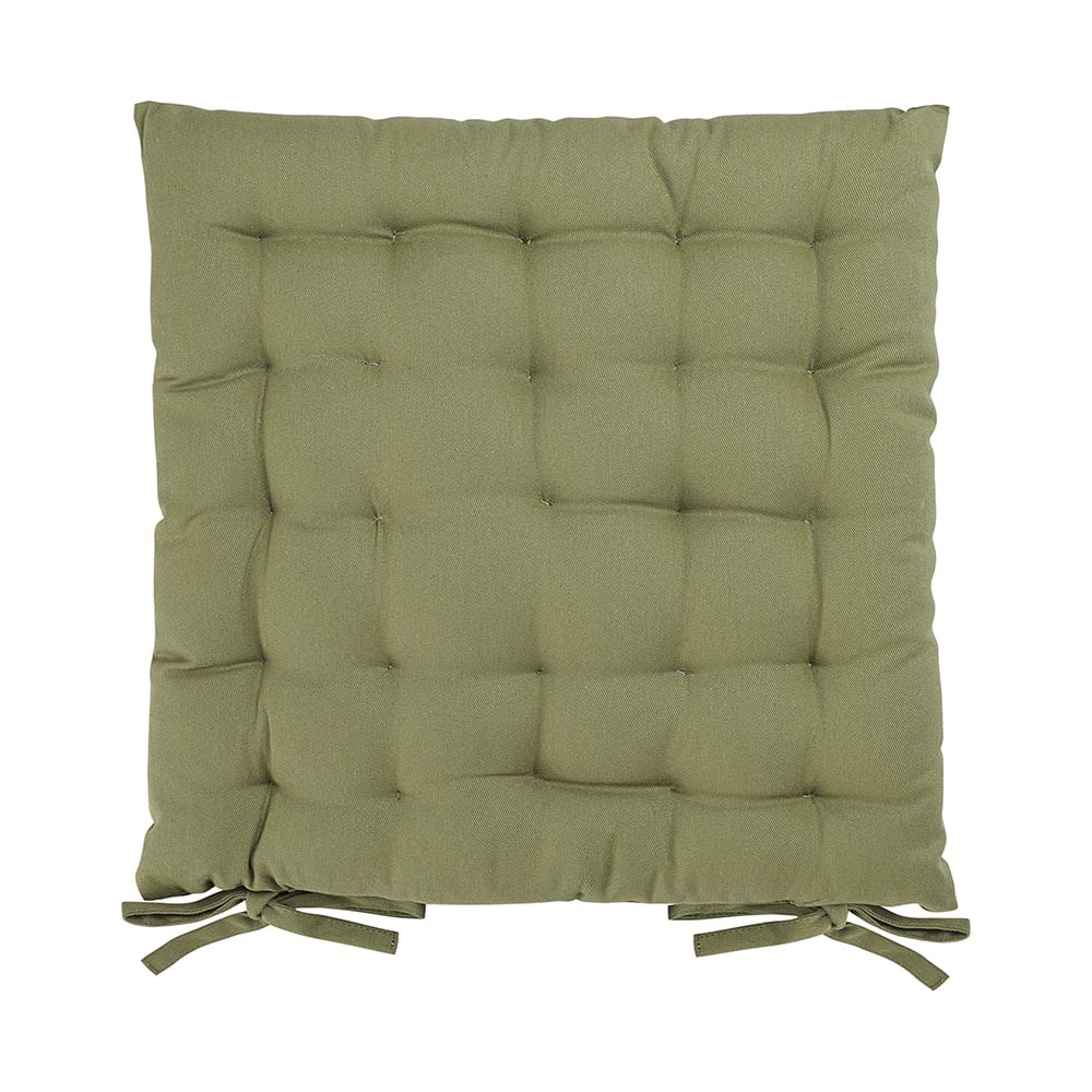 Подушка оливкового цвета из коллекции Essential станет отличным дополнением к вашей кухонной мебели. Ее можно использовать в качестве мягкой накладки на деревянные или металлические стулья, чтобы сделать их жесткую поверхность более удобной для сидения. Подушка легко фиксируется на ножках мебели с помощью специальных завязок. Однотонное изделие в лаконичном дизайне органично вписывается в любой современный интерьер. Чехол подушки изготовлен из экологичного и долговечного 100% хлопка. Плотность ткани: 215 г/м2. В качестве наполнителя используется плотный полиэстер, который позволяет изделию сохранять первоначальную форму на протяжении всего срока службы. Максимальная температура стирки 40º C Гладить при максимальной температуре 150º C Возможна барабанная сушка при низкой температуре Не отбеливать Возможна сухая чистка