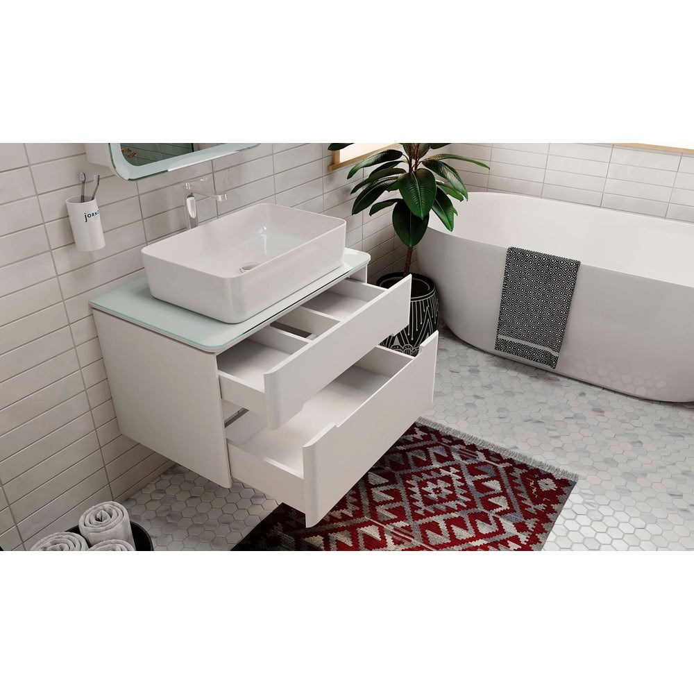 Тумба Bosko 75 для ванны под раковину MELANA-7050HПростота форм и мягкость образа создает ощущение легкости и чистоты пространства комнаты.Столешница выполнена из прочного материала- стекла LacobelКорпус и фасады тумб выполнены из влагостойких материалов. Лаконичная интегрированная ручка тумбы гармонично завершает образ.- Столешница из стекла Lacobel - Система плавного закрывания ящиков - Внутренний дополнительный ящик для мелочей - 80000 циклов работы фурнитуры, нагрузка на ящики 25кг - Антибактериальные материалы - Корпус тумбы из МДФ в пленке ПВХ - Soft Touch поверхность - Возможность подобрать зеркало и шкаф-пенал комплектом