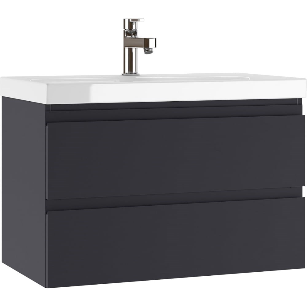 Подвесная тумба Домино Graffo В2 под умывальник Moduo 80 графит матовый DGr2101T в стиле минимализм позволит создать уникальный интерьер. Насыщенный цвет поможет создать атмосферу уюта и комфорта. Подвесной монтаж обеспечит дополнительное пространство в комнате. Корпус изготовлен из ЛДСП и покрыт эмалью, фасад из ЛМДФ также покрыт влагостойкой матовой эмалью. На мебели установлены направляющие полного выдвижения. Изделие обладает повышенной влагостойкостью и сопротивляемостью к внешним воздействиям, не выделяет вредных испарений в воздух, хорошо выдерживает воздействия бытовых химических веществ. Поставляется в собранном виде. 2 года гарантии производителя.