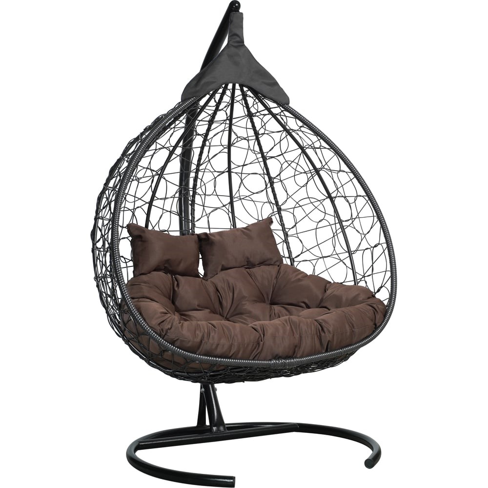 Подвесное двухместное кресло-кокон Лаура FISHT черное + черный каркас, подушка шоколадная FIS