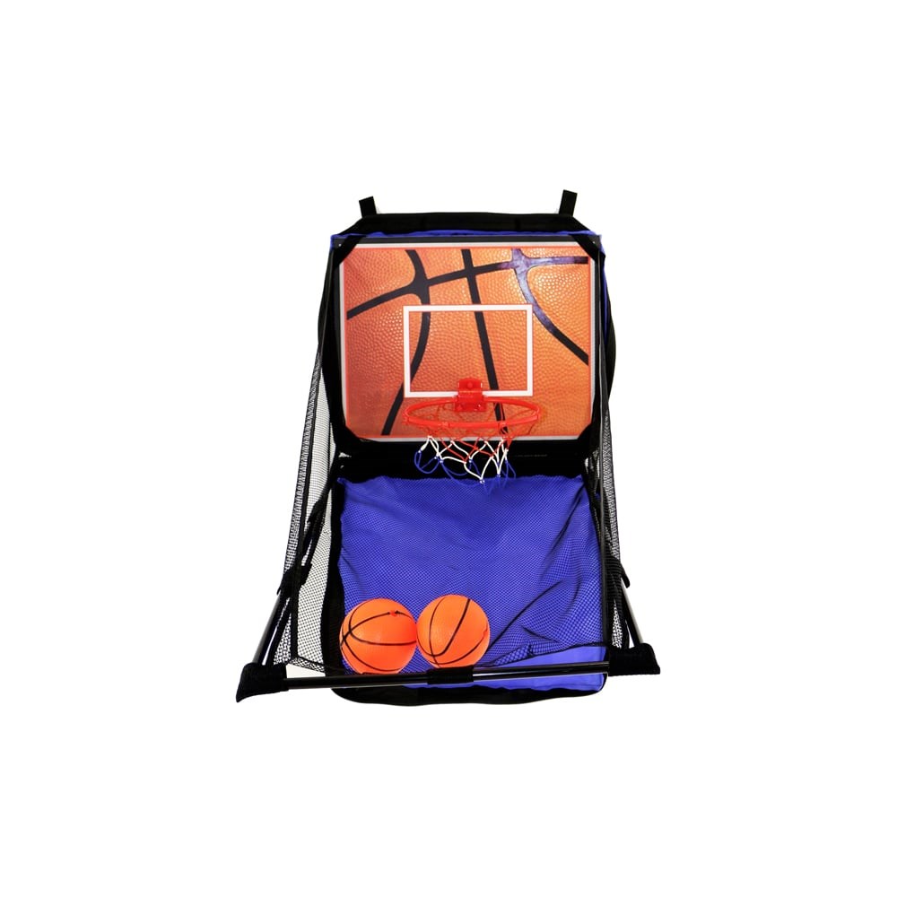 Складная-разборная конструкция для удобства хранения и переноски Габариты в разложенном виде (ДхшхВ): 67,5 х 43,5 х 37,5 см Баскетбольный щит (ШхВ): 43,5 х 37,5 см Материал щита: МДФ Баскетбольные кольцо диаметром 21 см Материал кольца: пластик Веревочная сетка: хлопок Два мяча из резины диаметром: 10 см Размер в упаковке (ДхшхВ): 6,5 х 43,5 х 37,5 см