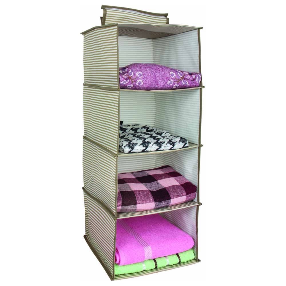 Подвесной органайзер для хранения Econova line, 4 полки, 290x240x640 мм, темно-бежевый 411484132 поможет организовать аккуратное и стильное хранение вещей. Одежда, головные уборы, аксессуары, косметика, полотенца, перчатки, варежки, головные уборы удобно разместятся в отделениях подвесного органайзера. Полки изготовлены из качественного нетканого материала, который не пачкается и не впитывает влагу. Подвесной органайзер в шкаф крепится к штанге на застежку-липучку и легко перемещается.