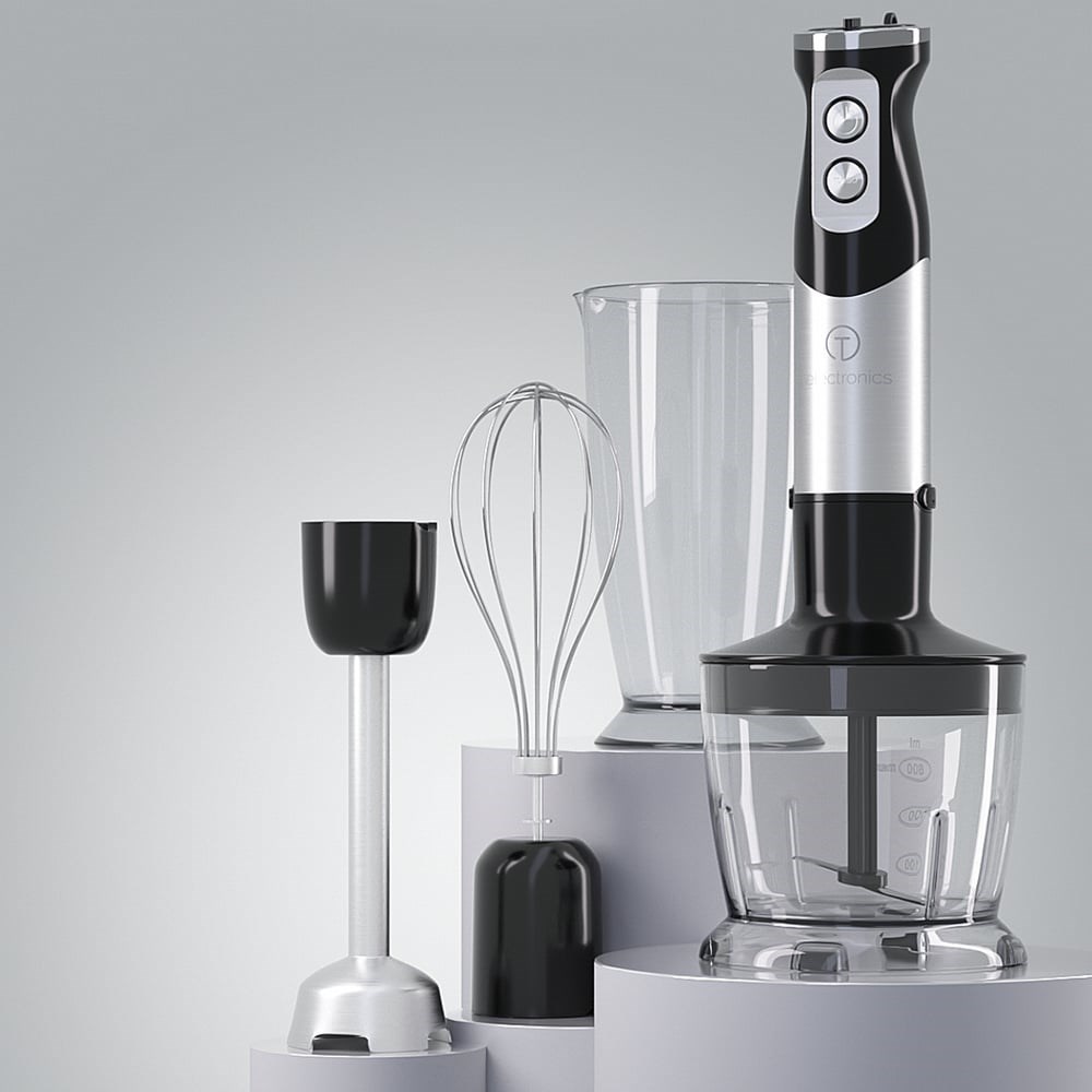 Ручной портативный блендер 3в1 от Titan ElectronicsНабор погружного блендера включает в себя все необходимые детали для того, что бы помочь вам быстро и легко смешивает ингредиенты для приготовления вкусных и полезных рецептов, супов-пюре, соусов, соков.• Корпус.Внутри полностью медный малошумный двигатель с мощностью постоянного тока 1000Вт. При этом номинальная мощность 500Вт. Есть встроенная защита от перегрева. В качестве элементов управления кнопка регулировки 12 режимов скорости и кнопка турбо режима.• Стакан для смешивания / мерный стакан.Объем 600 мл. Прекрасно подойдет для отмеривания жидкостей, смешивания напитков, заправок для салата и многого другого. Не содержит бисфенола и легко моется в посудомойке• Насадка для взбивания / венчикИдеально для взбивания сливок, яичных белков и т.д.• Насадка для смешивания с S образным ножом• Чаша для измельчения с реверсивным лезвиемТак же подходит для мытья в посудомоечной машине. Объем - 500 мл. Измельчитель можно использовать как мини-кухонный комбайнУсовершенствованный защитный кожух лезвия из пищевой нержавеющей стали хорошо предотвращает появление царапин, защищает вашу посуду, одновременно предотвращая разбрызгивание еды, сохраняя вашу кухню безупречной и уменьшая хлопоты по уборке кухонного беспорядка.Эргономичная ручка в нескользящем исполнении с удобным хватом.Блендер изготовлен из нержавеющей стали, а встроенный двигатель предотвратит перегрев, перегрузку и исключит громкий шум.