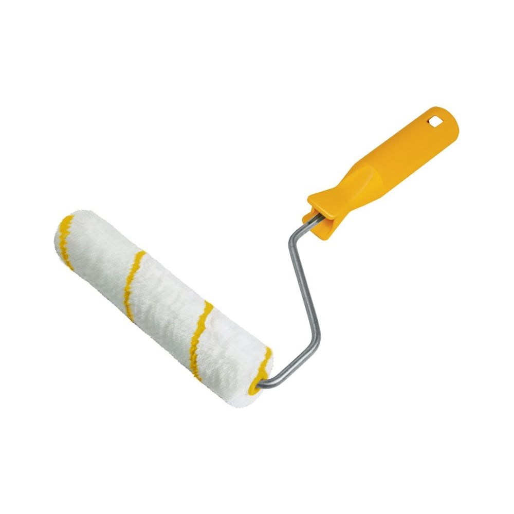 Полиакриловый мини-валик In Work длина 150 мм диаметр 35 мм ворс 10 мм бюгель 6 мм 02735-1 используется для работы с гладкими и полушершавыми поверхностями небольших размеров. Подходит для различных ЛКМ. Ролик сделан из термошубки из полиакриловой нити. Бюгель выполнен из оцинкованной инструментальной стали, а ручка - из прочного пластика.