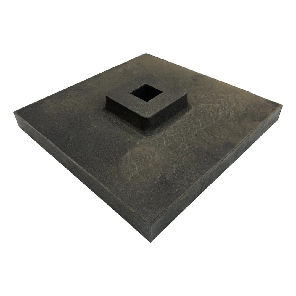 Полимерная подставка под веху ТЕХНОЛОГИЯ 330x330x60 мм, 6.5 кг 00000007319 - литое изделие черного цвета из полимерпесчаного композитного материала, квадратной формы, со стороной квадрата 330 мм и квадратным сквозным отверстием 40х40 мм. Толщина изделия 30 мм и 60 мм в средней части, масса 6,5 кг. Применяется для установки оградительных вех. Дополнительные технические характеристики: Материал изготовления полимерпесчаный материал Длина 330 мм Ширина 330 мм Высота 60 мм Габариты отверстия для вехи 40х40 мм