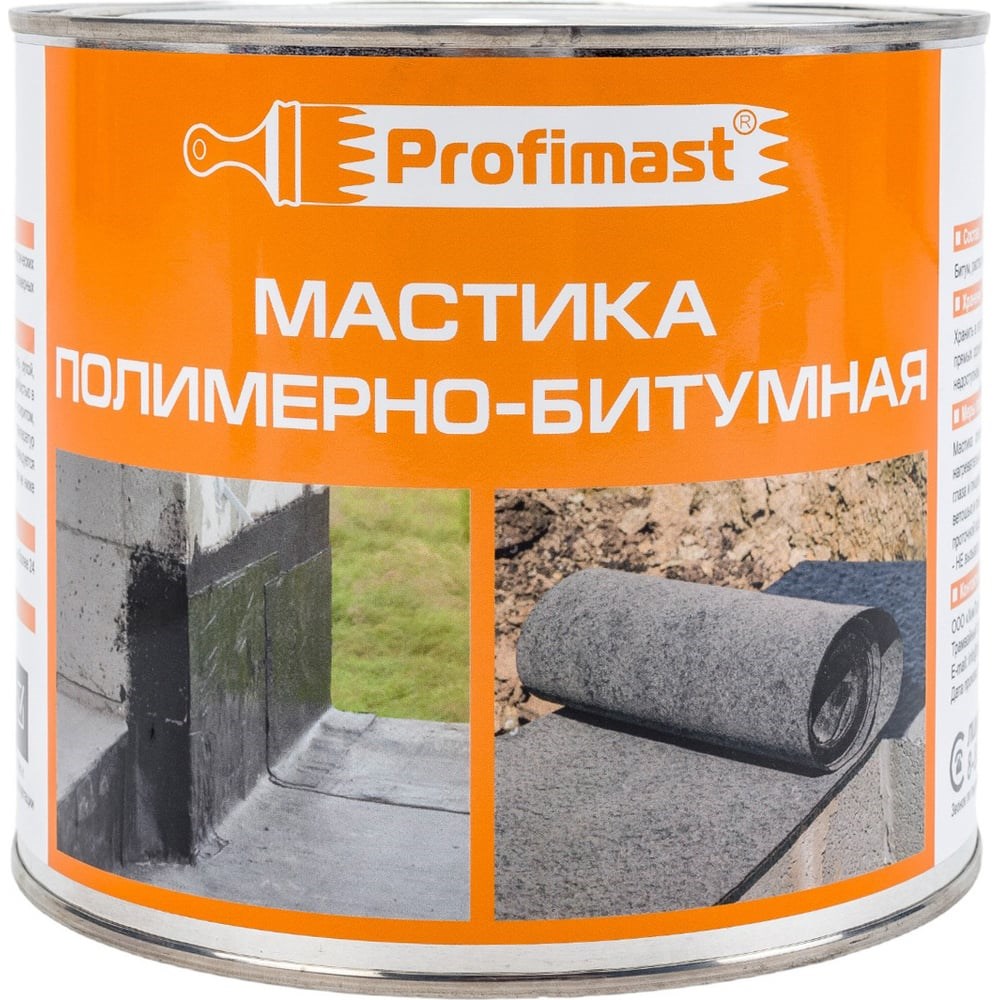 Полимерно-битумная мастика Profimast 2 л / 1,8 кг 4607952900745 обладает клеющими свойствами, что позволяет работать с рулонными кровельными и гидроизоляционными материалами, полимерными изоляционными пленками. Незаменима для гидроизоляции бетонных поверхностей, элементов фундамента, деревянных и металлических конструкций. Продукт отличается эластичностью.