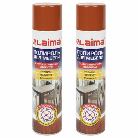 Полироль для мебели КОМПЛЕКТ 2 шт., ЛАЙМА "Антипыль" с воском и антистатиком, 300 мл, аэрозоль, 880616