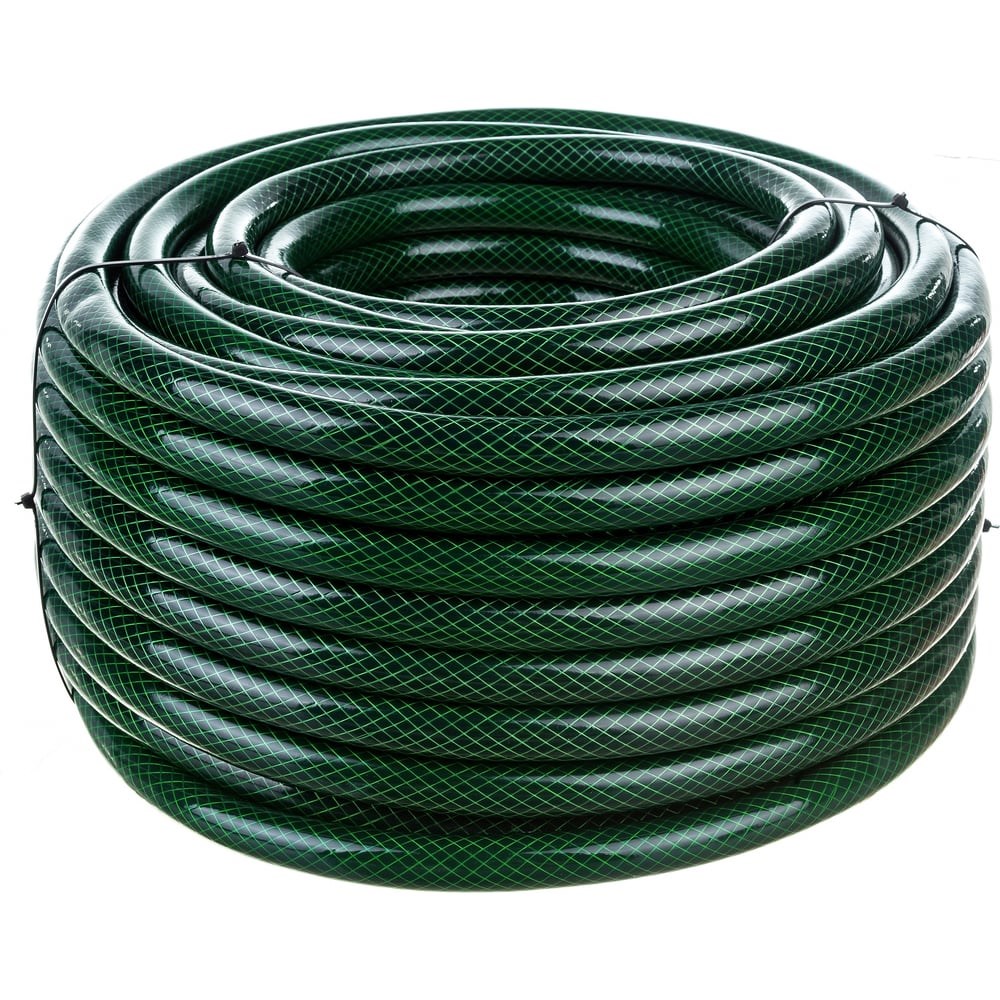 Поливочный шланг Yard Люкс, ПВХ, армированны, зеленый, 3-х слойный, 1,85 мм, D 3/4, 50 м 66-3-050 предназначен для орошения почвы на садовых и парковых участках. Изготовлен из ПВХ высокого качества, имеет двухслойную, армированную конструкцию. Материал армирующего слоя - полиэстерная нить. Это придает изделию высокую прочностью и стойкость к излому. Изделие устойчиво к воздействию УФ излучения, не подвержено гниению. Диапазон рабочих температур от 0 до +45 °С. Материал изготовления не содержит вредных для окружающей среды веществ.