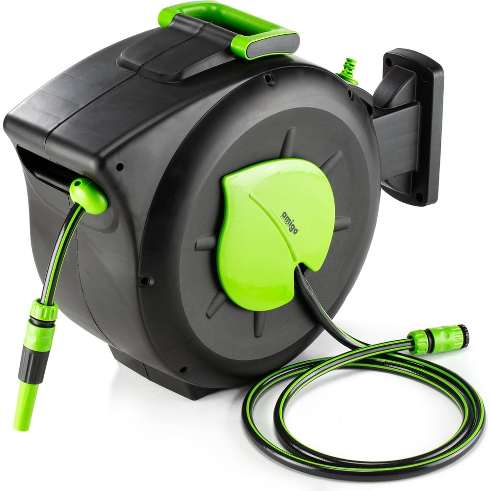 Система автоматического скручивания с идеальной намоткой Медленная деликатная смотка шланга предотвращает травмирование пользователя, разрушение окружающих предметов Направляющая шланга обеспечивает аккуратное удержание шланга при втягивании в корпус и предотвращает перегиб Система фиксации длины шланга с увеличенным ресурсом Угол поворота на 180 позволяет увеличить зону полива Удобная ручка для переноски Встроенный адаптер для крепления окончания шланга с коннектором в нерабочем состоянии Корпус катушки, настенный держатель, коннекторы и насадка – прочный термостойкий ABS-пластик, устойчивый к УФ-излучению, обеспечивает продолжительный ресурс работы в течение нескольких сезонов Шланг – термостойкий PVC Диаметр шланга 1/2 дюйма Стабильная форма Высокое сопротивление скручиванию и перегибам Диапазон рабочих температур от -5 °до 45°C Рабочее давление шланга 8 бар, разрывное давление 28 бар