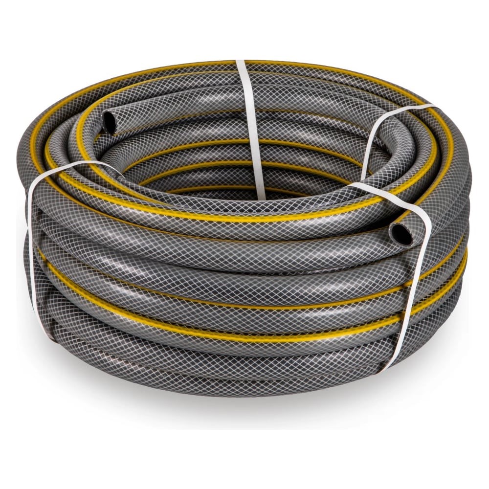 ШЛАНГ С ПРОЗРАЧНЫМ НАРУЖНЫМ СЛОЕМ,материал-ТЭП (Термоэластопласт) 3-х слойный усиленный шланг, не запаянный, гладкий снаружи и внутри. Экологически чистый, не токсичный, без запаха и дополнительных примесей (в отличии от резины). Предназначен для подачи воды хозяйственно-питьевого назначения, воды горячей, пищевых напитков, слабых растворов кислот и щелочей Характеристики и преимущества: устойчив к заломам, не перегибается, долговечен в использовании, изготовленный из термоэластопласта, он обладает высокой устойчивостью к экстремальным температурам, выдерживая диапазон от -50 до +90 градусов(+120 градусов-кратковременно), устойчив к воздействию ультрафиолета и мороза. Рабочее давление 5 атм (0,5 МПа) , давление на разрыв 10 бар, количество слоев -3. Шланг поливочный ULTRA BLACK ТЭП бухта 25м армированный 3/4 В ПРИдачу представляет собой надежное и практичное решение для полива и других бытовых нужд. Армированная конструкция и трехслойная структура обеспечивают прочность и долговечность, а также позволяют выдерживать давление до 15 бар. Диаметр 3/4 дюйма и длина 25 метров делают его удобным для использования на больших участках. Черно-желтая расцветка шланга не только придает ему стильный вид, но и делает его заметным на участке, снижая риск споткнуться. Шланг также подходит для использования с пищевыми продуктами, что расширяет его функциональные возможности.