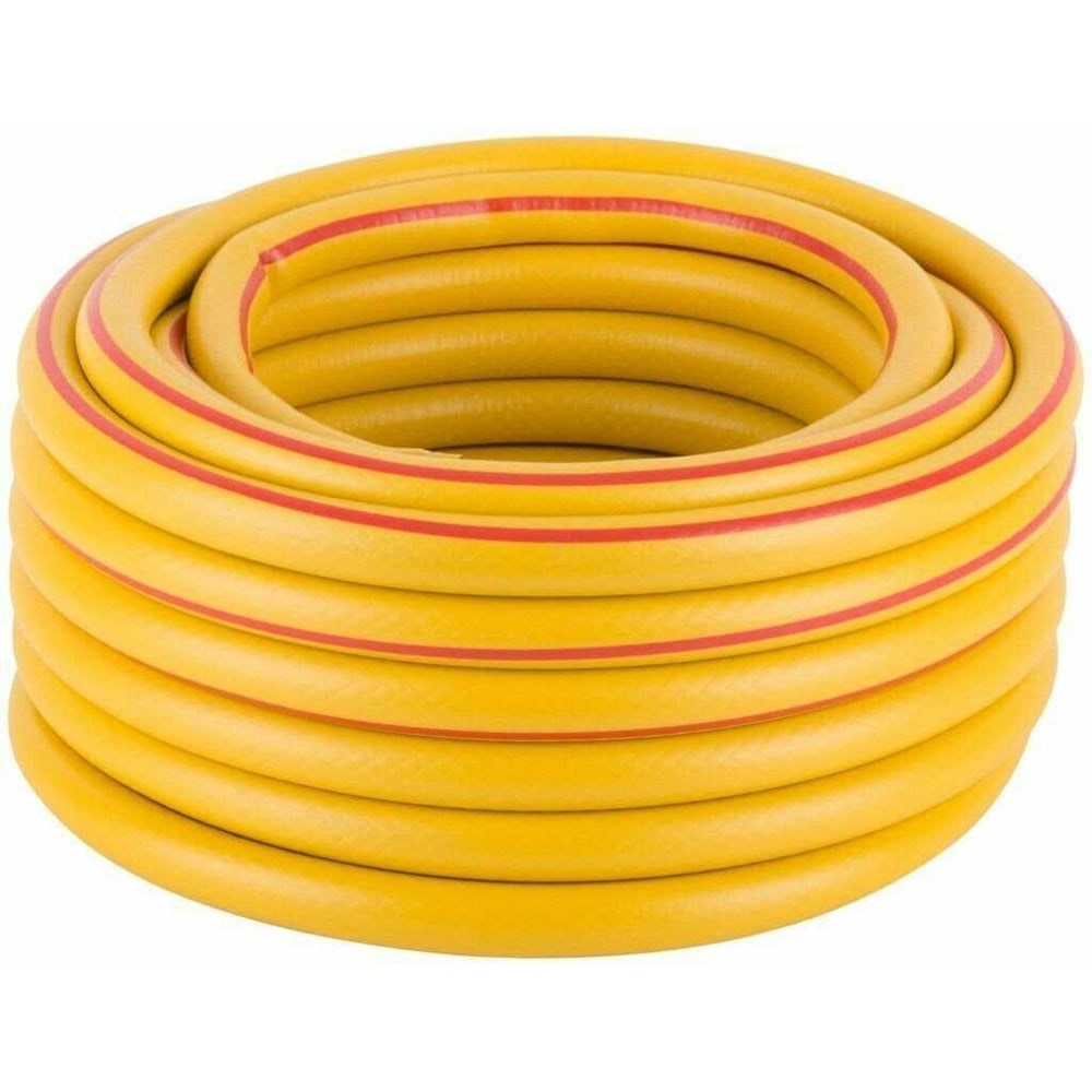 Шланг предназначен для полива, перекачки и прочих работ с жидкостями. Трехслойная конструкция из высококачественного ПВХ, армированным синтетической полиэстерной нитью, обеспечивает высокую прочность и долговечность шланга. Он не боится перегибов, перепадов давления и механических повреждений, что делает его идеальным выбором для частого использования. Удобство в эксплуатации: диаметр шланга обеспечивает хороший поток воды, а длина 25 метров позволяет охватить большую территорию. Яркий желтый цвет делает шланг заметным на зеленом газоне и в саду, что снижает риск случайных повреждений. Материал шланга устойчив к воздействию ультрафиолетовых лучей, что позволяет использовать его на открытом воздухе без риска потери цвета и качества.