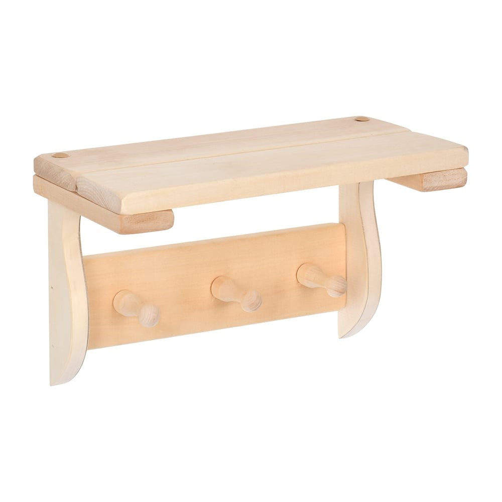 Полка с вешалкой Банные штучки 3 рожка, 29x18x14 см, липа 32414 подходит для использования в бане или сауне. Изготовлена из дерева липы, которая обладает лечебными свойствами, устойчивостью к влаге и появлению грибка.