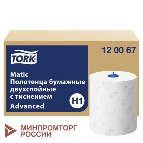 Полотенца бумажные рулонные 150 м, Tellus/TORK Matic (Система H1) ADVANCED, 2-слойные, белые, КОМПЛЕКТ 6 рулонов, 120067