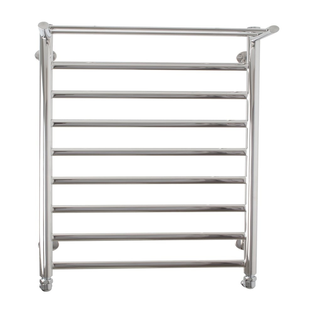 Водяной полотенцесушитель из качественной нержавеющей стали AISI 304L бренда Domoterm Альфа с полкой п9 500x900 предназначен как для сушки вещей, так и для обогрева ванных и душевых комнат. Изделие отличается хорошей теплопроводностью, прочностью и устойчивостью к коррозии. Стильный дизайн, технология лазерной сварки гарантирует герметичность, прочность, и долговечность конструкции. Изделие комплектуется фитингами и стойками. Вертикальные стойки имеют диаметр 32мм., горизонтальные перекладины выполнены из трубы диаметром 18 мм. Подключение к ГВС нижнее, резьба внутренняя, 1/2".