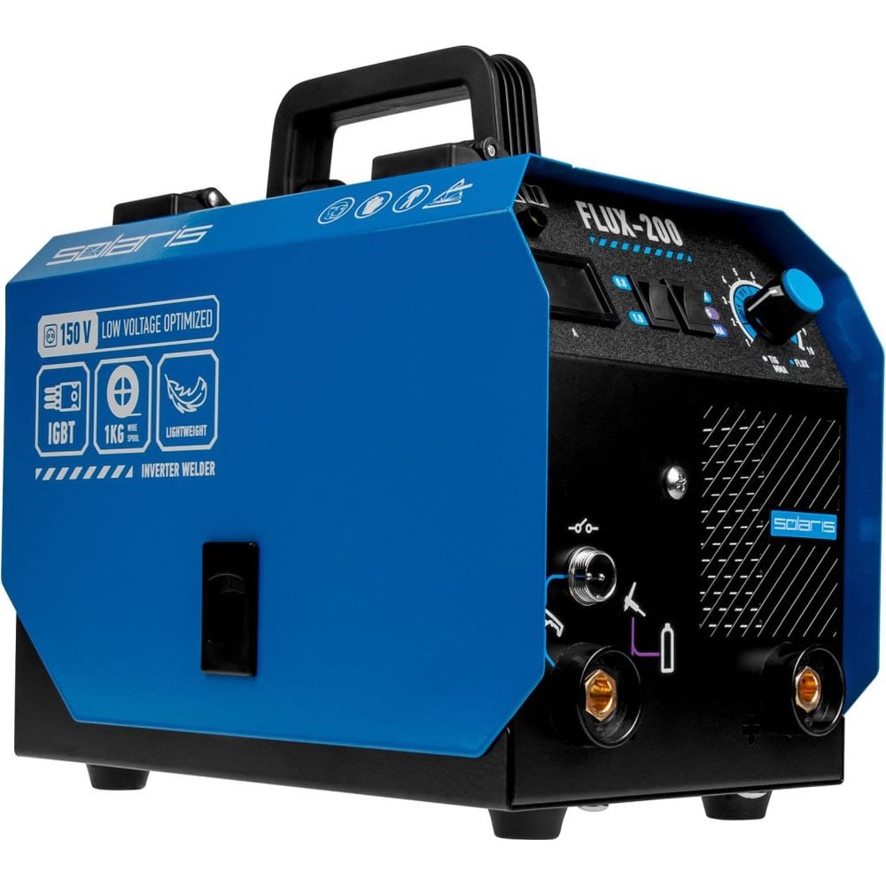 SOLARIS Полуавтомат сварочный FLUX-200 SL5712-1 Три режима: ■ > FLUX сварка порошковой проволокой. ■ > MMA сварка покрытыми электродами. ■ > TIG LIFT аргонодуговая сварка (вентильная TIG-горелка приобретается отдельно). ■ РАБОТАЕТ при нестабильной сети от 150 В ■ НЕ ТРЕБУЕТСЯ ГАЗ варит порошковой самозащитной проволокой ■ СИНЕРГИЯ выбери диаметр проволоки, с помощью регулятора подстрой интенсивность работы ■ СЪЁМНАЯ ГОРЕЛКА с байонетным соединением удобно использовать и обслуживать ■ Компактные размеры и небольшой вес удобство обращения с аппаратом и высокая мобильность ■ Инверторная технология с применением IGBT-транзисторов ■ Максимальный размер катушки 1 кг / 100 мм ■ Складная ручка для переноски аппарата ■ Порошковая проволока для сварки без газа в комплекте.