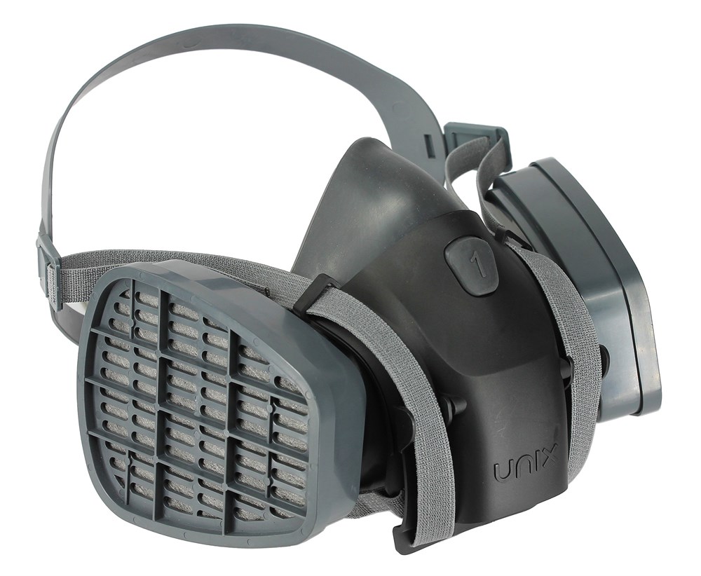 Компактная и легкая полумаска UNIX изготовлена из современных материалов. Фиксированная форма каркаса полумаски препятствует деформации полумаски, а подмасочник из силикона обеспечивает плотное прилегание маски к лицу. Для удобства эксплуатации предусмотрен рычаг быстрого сброса, он позволит опускать полумаску с лица не снимая другие СИЗ (каску, наушники). Важной особенностью является и наличие клапанной коробки с выдохом вниз, что исключает воздействие потока воздуха на рабочую поверхность и препятствует запотеванию СИЗ лица (очки, щитки).