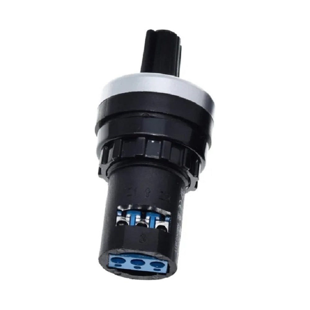 Потенциометр (переменный резистор) LA-5K имеет крепеж в отверстие 22мм и предназначен для регулирования аналогового напряжения. Как правило потенциометр используется для регулирования частоты вращения двигателя с помощью преобразователей частоты и многое другое. Данный потенциометр имеет сопротивления 5 КОм. Угол вращения составляет 1 оборот. Потенциометр чаще всего подключается к аналоговому входу 0-10В и за счёт изменения напряжения производит регулирование технологических параметров. Стандартный размер отверстия 22мм позволяет монтировать потенциометр в различные шкафы и панели не нарушая структуру и вид.