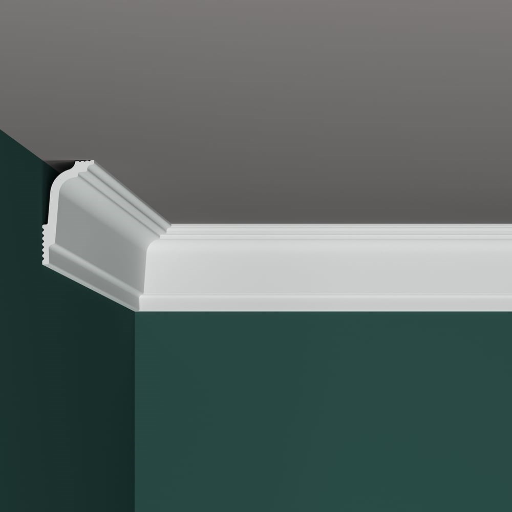 Потолочный плинтус или, как принято его называть в архитектуре, карниз – это наиболее популярный элемент лепного декора, который используют для декорирования стен и потолков.Основным функциональным назначением потолочного плинтуса является скрытие стыка между потолком и стеной, создавая плавный и красивый переход между ними. В зависимости от размера плинтус визуально может как увеличить, так и уменьшить высоту потолков.Ассортимент потолочных карнизов ПРАЙМДЕКОР насчитывает более 50 видов профилей разного дизайна и размера от классических до современных форм, что позволяет подобрать плинтус под любой стиль отделки помещения.Монтаж потолочных карнизов ПРАЙМДЕКОР очень прост и не требует дополнительных навыков, его можно красить любыми интерьерными красками, не содержащими растворитель, шпаклевать и тонировать, придавая ему новый образ.Потолочные плинтуса ПРАЙМДЕКОР изготавливаются методом экструзионного вспенивания полистирола общего назначения. Гранулы полимера добавляются в экструдер вместе со специальными добавками и вспенивающим агентом (газ CO2), где они расплавляются и вспениваются, образуя единую гомогенную массу.