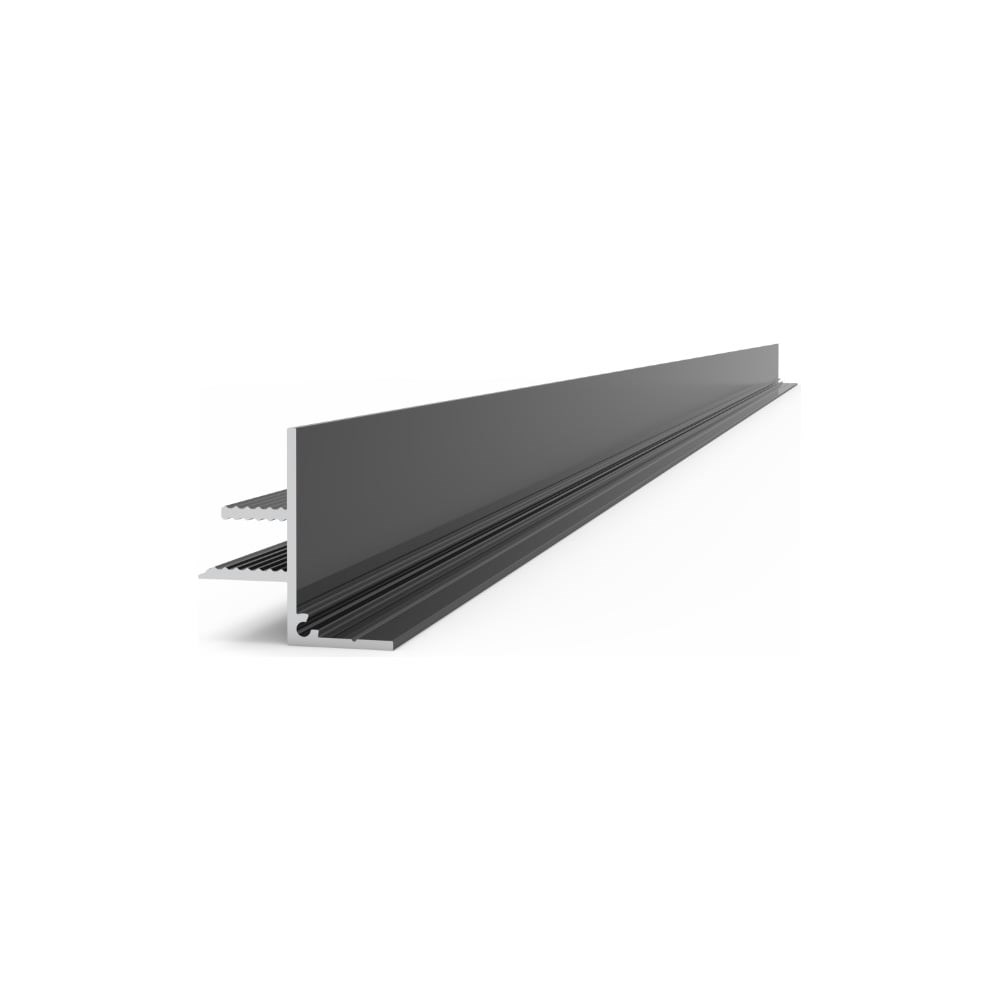 Плинтус потолочный под гипсокартон 10 мм изготовлен из анодированного алюминиевого сплава и имеет черное матовое покрытие. Благодаря улучшенным характеристикам плинтуса, монтаж будет несложным, а результат превысит ваши ожидания. На основании плинтуса предусмотрены насечки для крепления его стене с помощью саморезов. Две рифленые планки под основанием плинтуса обеспечивают лучшее сцепление с гипсокартоном и шпаклевкой, что исключает дальнейшее появление трещин на потолке. Специальный технологический зазор в плинтусе позволяет без труда стыковать два профиля между собой с помощью финишного гвоздя. Саморезы и финишные гвозди приобретаются отдельно.