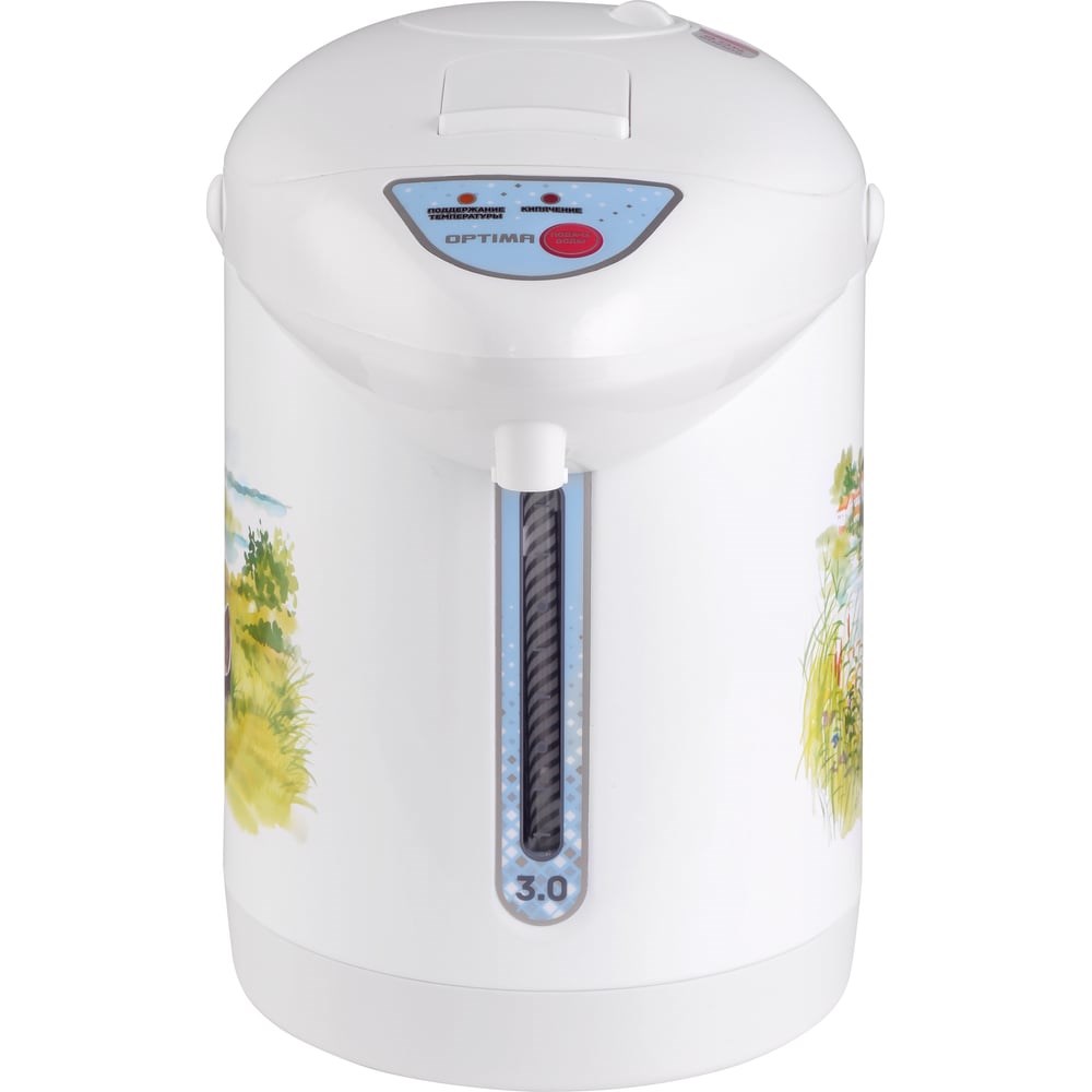 Поттер Optima AP-303R / 3.0л 3 сп. нал. воды бак из нерж.стали белый пластик 800Вт / 2000569 обеспечивает нагрев воды и длительное сохранение тепла. Подходит для использования дома и на работе. Экономит энергию за счет уменьшения теплоотдачи. Корпус выполнен из нержавеющей стали - надежно защищен от коррозии, увеличивает срок службы чайника. Имеет объем 3 литра, оснащен индикаторами уровня воды и нагрева, функцией поддержания температуры и защиты от перегрева. Чайник-термос снабжён пластиковой ручкой для удобства переноса. На верхней части поттера расположена и панель управления. Кнопка «ПОДАЧА ВОДЫ» включает электронасос и подаёт воду в чашку. На панели управления расположены два световых индикатора. Индикатор «поддержание температуры» сигнализирует о готовности чайника-термоса к работе, индикатор «кипячение» показывает процесс нагрева воды.