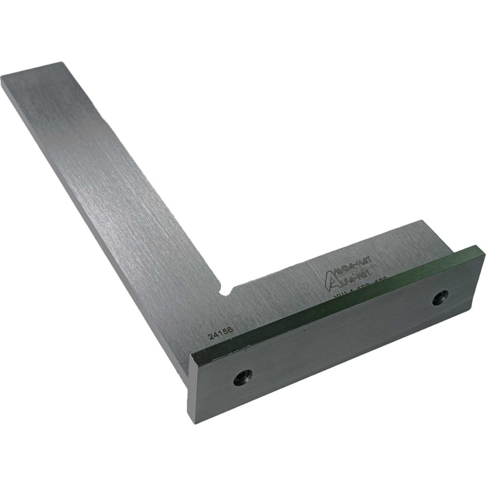 Угольники поверочные слесарные плоские (тип УШ по ГОСТ 3749-77) предназначены для проверки и разметки прямых углов (90°). Угольник поверочный УШ соответствует требованиям ТУ 26.51.33.143-010-40323842-2017 и признан годным для эксплуатации. угольник обеспечивает высокую точность измерений благодаря своей конструкции и использованию высококачественных материалов. Класс точности 1 позволяет использовать угольник в задачах, где требуется минимальная погрешность измерений. Основное назначение угольника типа УШ заключается в обеспечении точного измерения углов и прямых линий. Он используется для контроля прямолинейности деталей, проверки взаимной перпендикулярности поверхностей, а также для разметки и маркировки материалов. Угольник проверочный УШ – это инструмент для проверки прямых углов с широким основанием. Короткая линейка угольника имеет большую толщину, чем длинная. Это позволяет удобно размещать его в вертикальном положении или передвигать по детали с зацепом за длинную часть. Может использоваться для контроля качества готовых изделий или деталей, а также для выполнения разметочных работ. Кроме того, с его помощью проверяется точность настройки станков. Согласно действующему стандарту – ГОСТ 3749-77 –твердость поверхностей составляет не менее 55 HRC. Первичная калибровка будет произведена в соответствии с методикой калибровки МК.ИМЦ.03.07.2020 рабочего средства измерений – Угольники поверочные УП/УШ АЛЬФА-НДТ