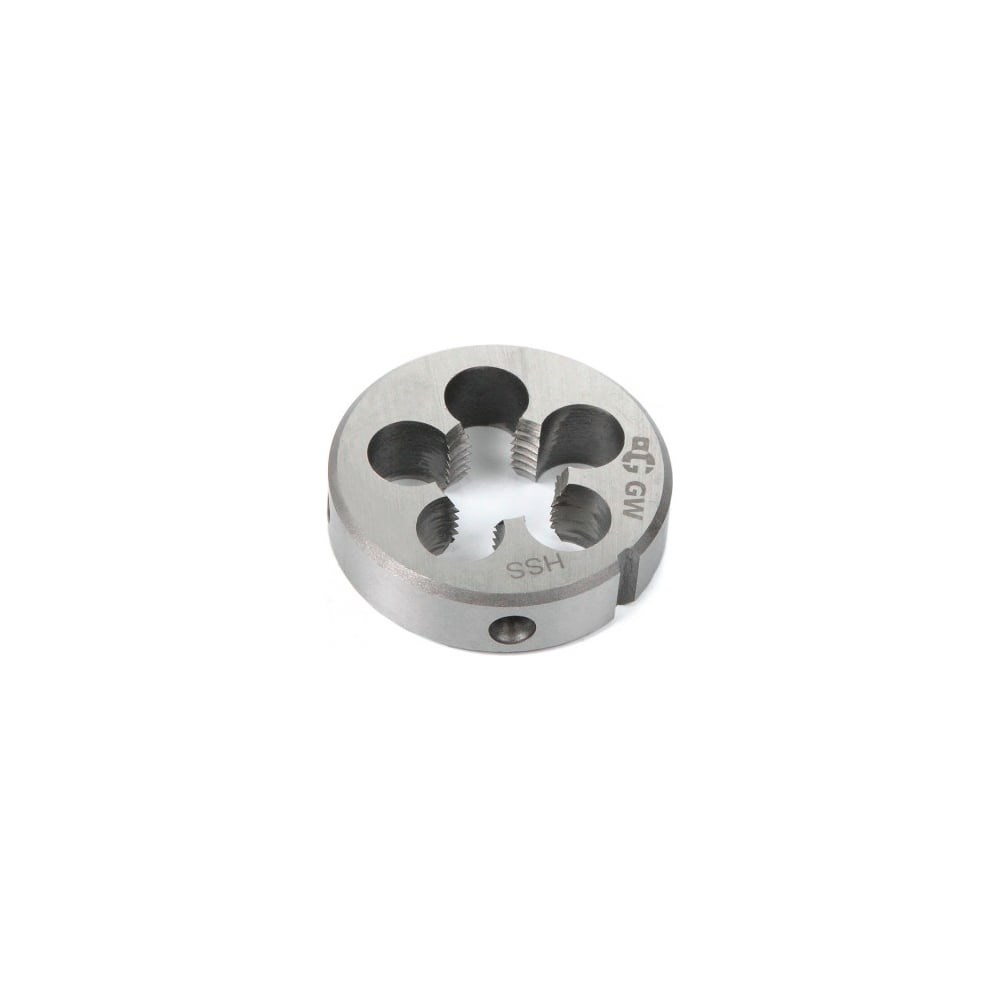 Плашка №58 M18 x 2,0, HSS 4341, ТМ ПрофОснастка имеет метрическую резьбу, круглая, цельная, точность 6G, угол заточки 30°, предназначена для нарезания резьбы в металлах твердостью менее 800 Мпа. Выполнена из высококачественной быстрорежущей инструментальной стали по ГОСТ 9740-71.