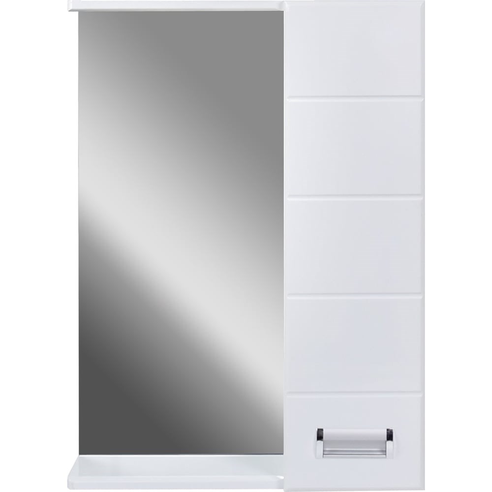 Зеркало DORATIZ Вега 60 правое с подсветкой, белый, со шкафчиком 2711.112 отличается простыми формами, имеет горизонтальную фрезеровку и оригинальные прямоугольные ручки. Каждая деталь этой мебели сочетает в себе практичность и функциональность. Фасады мебели DORATIZ изготавливаются из качественного и высокоплотного влагостойкого МДФ. Обработка зеркального полотна предназначена для использования во влажных помещениях.  Шкаф оснащен двумя стеклянными полками, которые легко можно отрегулировать по высоте. Плавное закрывание дверцы обеспечивают петли с доводчиком. Сверхэкономичная система освещения рассчитана на более чем 60 000 часов беспрерывной работы. Выключатель подсветки защищен от проникновения воды. Вывод электропровода без вилки для прямого соединения с проводкой в ванной комнате. Петли с доводчиком, влагостойкое МДФ фасады, ЛДСП корпус, покрытие пленка, с LED-подсветкой.  Мебель TM Doratiz изготавливается в Российской Федерации в соответствии с ГОСТом 16371-2014. Все материалы, используемые в производстве, соответствуют санитарно-эпидемиологическим стандартам, что подтверждается соответствующими сертификатами. Поставляется в собранном виде и готово к установке.