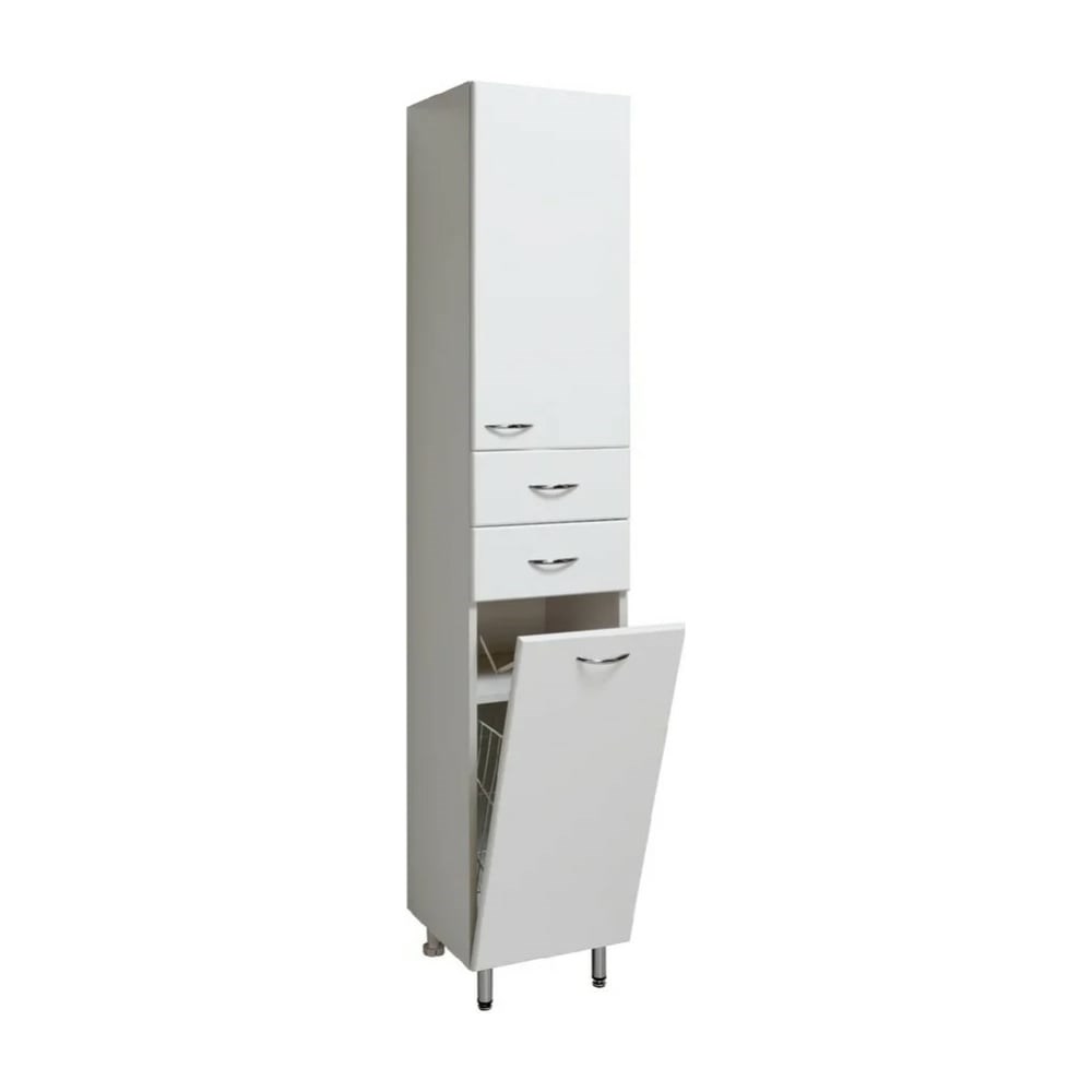 Пенал RUNO 35 правый, с корзиной для белья 00000000130 - функциональное решение для недорогого и современного оснащения ванной комнаты. Шкаф выполнен в белом цвете, идеально впишется в любой интерьер ванной комнаты. Изделие имеет 2 выдвижных ящика и 2 отделения: в верхнем - одна распашная дверца с внутренней полкой, в нижнем - одна откидная дверца с полкой и корзиной для белья. В комплекте к шкафу идут петли со встроенным доводчиком, 4 ручки, 2 хромированные и 2 пластиковые ножки. Мебель для ванной RUNO - красота и практичность в мелочах!