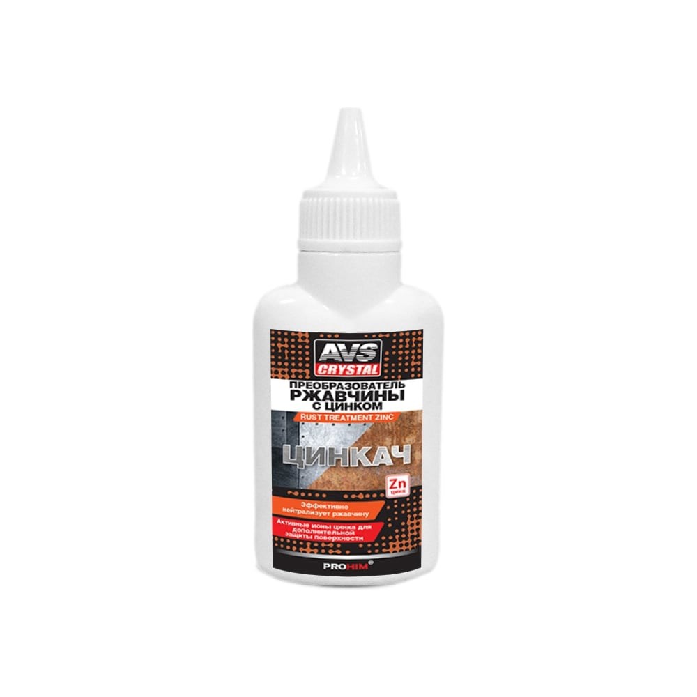 Преобразователь ржавчины с цинком AVS ЦИНКАЧ 60 мл AVK-190 A07595S используют для предварительной обработки металлических поверхностей (сталь, чугун). Средство эффективно нейтрализует продукты коррозии при толщине слоя до 80 мкм. Активные ионы цинка в составе обеспечивают дополнительную защиту и продлевают срок службы изделий.