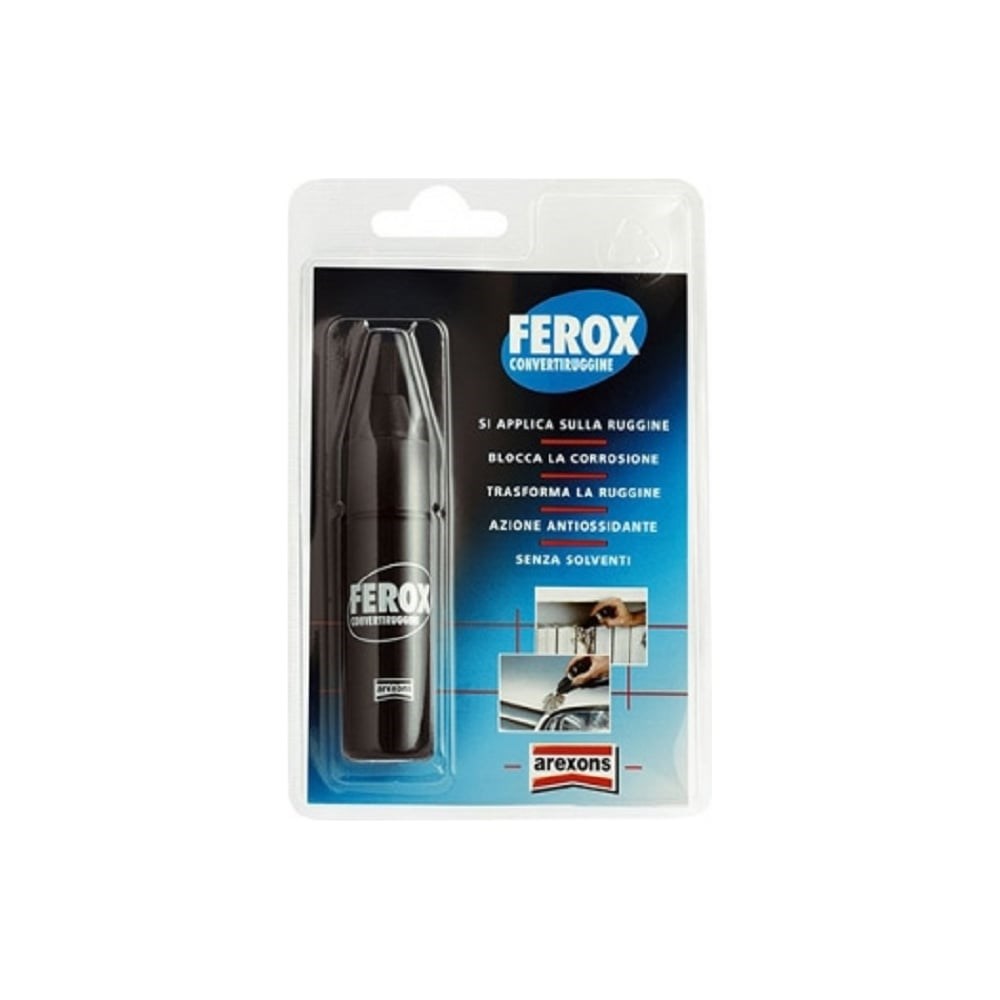 Преобразователь ржавчины в грунт AREXONS Ferox 15 мл 4141- преобразователь ржавчины и защита всех металлических поверхностей: ржавых, новых, окрашенных и неокрашенных. Готовый к применению, быстрый и простой в использовании. Благодаря низкой токсичности применяется в закрытых или плохо проветриваемых помещениях. Ferox создан на основе синтетических смол, диспергированных в воде, не содержит растворителей. Вступая в химическую реакцию с ржавчиной, превращает её в стабильный чёрный состав не агрессивный для металла. Препятствует возникновению новых очагов ржавчины, защищает от влаги. Так же эффективен на окрашенных поверхностях создавая защитный прозрачный слой. Совместим с любым типом краски, как на водной основе, так и на основе растворителей.