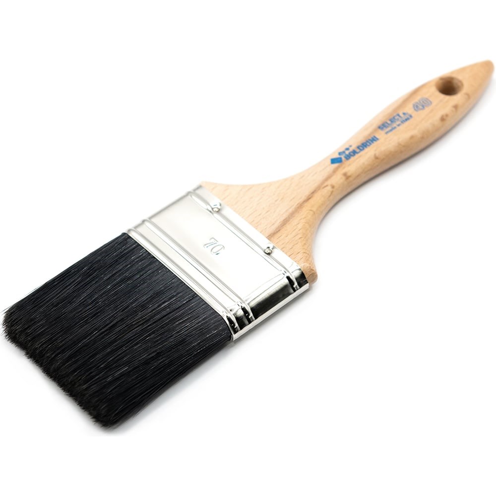 Boldrini Кисть с черной щетиной из синтетики, 70х15 мм, 40070 с черной синтетической щетиной и ручкой из дуба для самых требовательных профессионалов обеспечит идеальное покрытие на всех типах поверхностей. Кисть для нанесения масел, декоративных пропиток и антисептиков. Так же подходит для лаков и эмалей, как на алкидной, так и на водной основе.