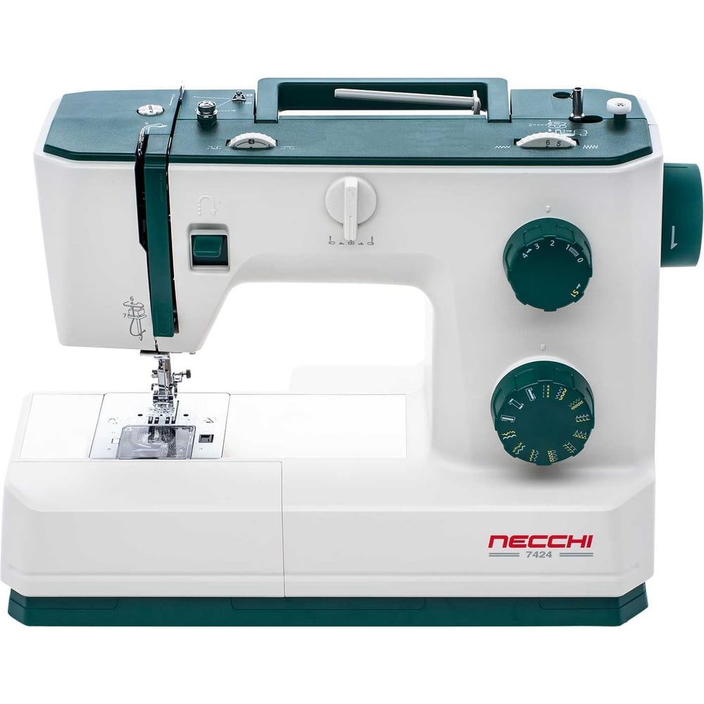 NECCHI 7424 - Машина для работы в условиях с повышенной нагрузкой. Специальная модель с усиленным двигателем в 90 Вт и скоростью шитья до 1000 строчек в минуту. С NECCHI 7424 любой пользователь поймет, что такое плавная и быстрая работа сравнимая с работой промышленных швейных машин.Металлическая рабочая поверхность защищает машину от повреждений при работе с тяжелыми материалами, таким как кожа, джинса, вельвет и брезент. Одновременно прогрессивная конструкция горизонтального челнока прекрасно адаптирована к тонким и проблемным материалам таким, как муслиновые ткани, полностью синтетические материалы и трикотажные.24 швейные операцииРабочие, трикотажные, оверлочные и декоративные строчкиВымётывание пуговичной петлиГоризонтальный челнок с системой быстрой заправки QBTРегулировка давления лапкиРегулятор положения иглыОтключение транспортера ткани для вышивки и штопкиСветодиодная подсветкаСвободный рукавУвеличенная высота подъема лапкиАвтоматическая намотка шпулькиСъемные прижимные лапкиРеверс для закрепки шваБоковой обрезчик нитейУсиленная металлическая рамаРегулировка длины стежка до 4,0 ммРегулировка ширины стежка до 6,0 ммВысота подъема лапки до 13 ммСкорость шитья до 1000 строчек в минутуМощный двигатель 90 ВтВес нетто - 6,7 кг, брутто - 7,6 кгРазмер машины 40х31х18 смРазмер коробки 45х35х22 смКомплект аксессуаров находится внутри съемного столика.