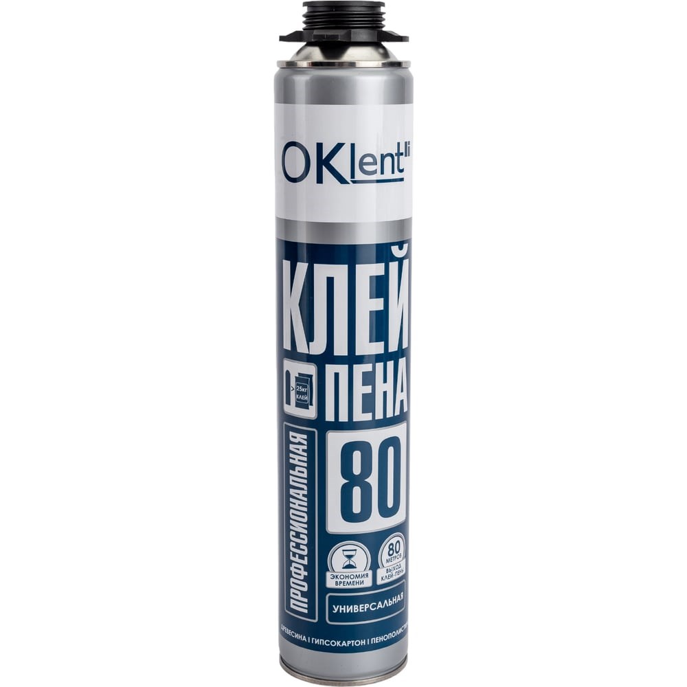 Клей-пена OKlent профессиональная, универсальная, 950 гр 00000343725 - высококачественный универсальный полиуретановый клей с высокой силой склеивания и быстрой полимеризацией. Состав в виде пены с низким коэффициентом расширения, обладает превосходной адгезией к таким материалам как: гипсокартон; дерево; ДСП; камень; цементно-волокнистые, бетонные и гипсовые плиты; полиуретан, минеральная вата и другие. Может использоваться для возведения кладки, приклеивания утеплителя или каких-либо других материалов, при этом обеспечивает долговечность и высокие эксплуатационные характеристики. Обладает хорошими звуко- и термоизоляционными свойствами. В твердом состоянии можно окрашивать. Одного баллона хватает для приклеивания до 15 кв.м утеплителя или для кладки до 45 газобетонных блоков шириной 300 мм.