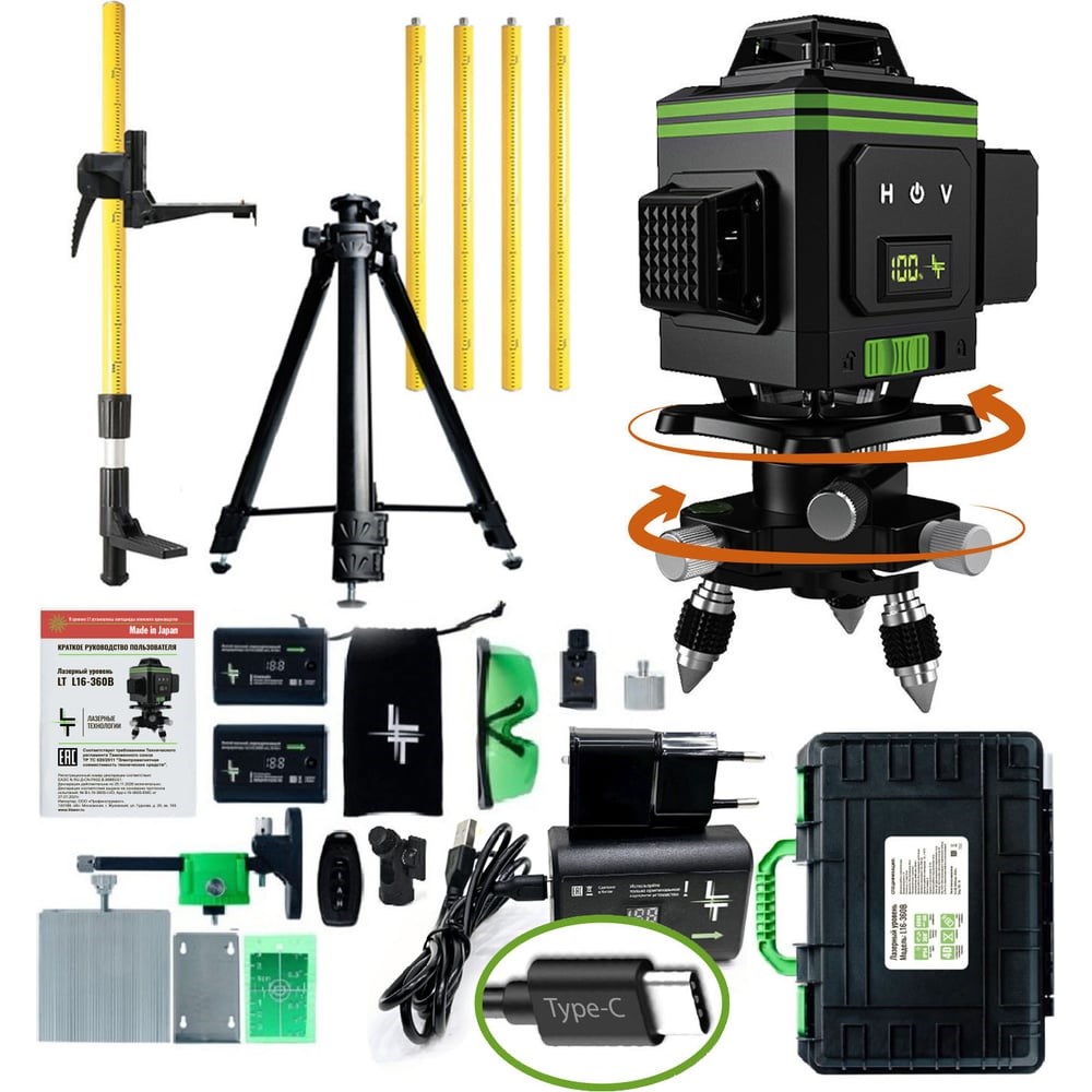 Профессиональный лазерный уровень LT L16-360В + штатив 3.6 м + тренога 1.5 м усиленная L16-360В/3.6м/1.5м-УС с двумя вертикальными и двумя горизонтальными лучами в 360. Нижний горизонт идеально подходит для работ по заливки полов и стяжки. Особенности: до 8 часов работы при постоянном свечение луча лучи включаются как с сенсорных кнопок на корпусе устройства, так и с пульта дистанционного управления зеленый цвет луча лучше виден на свету и менее вреден для глаз дальность до 50 метров (в зависимости от освещения) при помощи приемника (отражателя) лазерных лучей (приобретается отдельно) можно работать в солнечную погоду противоударный и влагозащитный кейс для переноски Уровень проходит трехступенчатый контроль проверки качества сборки на заводе-производителе и инспекционный контроль приемки товара. Калибровка устройств производится на заводе с помощью специального оборудования, сертифицированного по международным стандартам и только специалистами самого высокого уровня допуска. Модель работает от Li-ion батареи.