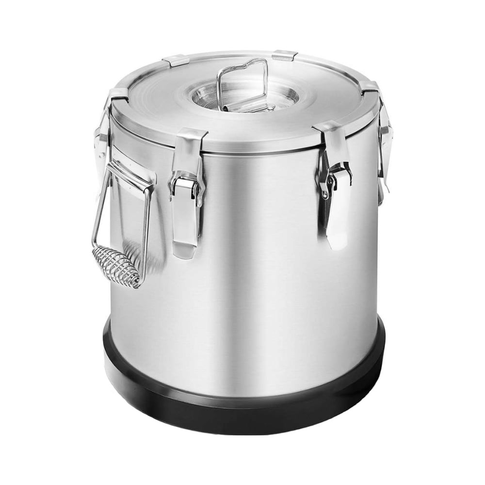 Профессиональный термос Viatto 15 л, 330x230 мм va-tp15ss 175886 изготовлен из нержавеющей стали. Предназначен для транспортировки продуктов питания с сохранением температуры Благодаря одинаковому диаметру всех моделей и наличию пластикового основания термосов VIATTO, модели разного объема стопируются друг на друга, что удобно при перевозке и хранении. Крышка термосов крепится с помощью заклепок и оснащена специальным клапаном.
