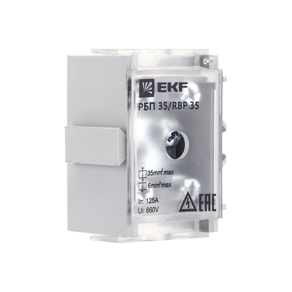 Распределительный блок проходной РБП 35 (1х35-4х6 мм2) 125/50А EKF PROxima предназначен для ответвлений от магистральных линий медных и алюминиевых проводов напряжением до 660 В, с предварительным снятием изоляции на месте установки, без разрезания проводника. Позволяет подключить до 4 отходящих линий.