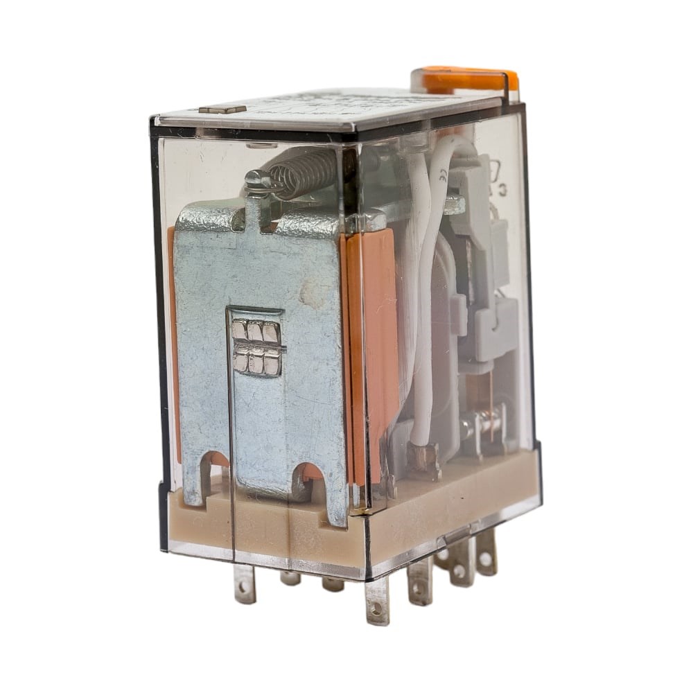 Дополнительные характеристики промежуточного реле Finder 4 перекидных контакта 7А, 24В AC, 553480240040: Номинальное напряжение катушки - 24 В. Монтаж в розетки 94 серии. Кнопка Тест + механический индикатор. Материал контактов AgNi. Время вкл/выкл - 9/5 мс. Фото товара является условным, актуальные данные указаны в технических характеристиках.