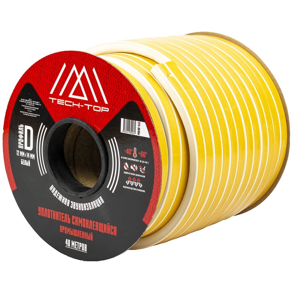 Промышленный уплотнитель TECH-TOP D 12х14 мм, белый, бухта 40 м 205989 используется для уплотнения окон, дверей, гаражных ворот и конструкций с повышенными требованиями к пожарной безопасности. Уплотнитель белый, самоклеящийся отличается высокой звукоизоляцией и устойчивостью к атмосферным воздействиям.