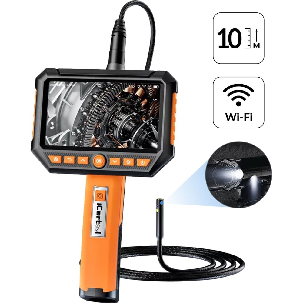 iCartool IC-V116A-10 с длиной зонда 10 метров и двумя камерами – это высокотехнологичное устройство, предназначенное для инспекции труднодоступных мест и внутренних полостей. Идеально подходит для использования в таких отраслях, как машиностроение, строительство, энергетика и ремонт.Ключевые преимуществаДлина зонда 5 метров: позволяет проводить осмотр на значительном расстоянии от точки доступаДве камеры: возможность одновременного получения изображений с разных углов значительно увеличивает объем информации для анализа, что особенно полезно при осмотре сложных объектовДисплей 5” c IPS матрицей: позволяет видеть изображение без искажений и потери цветопередачи при взгляде под угломХранение данных: встроенная память позволяет сохранять видео и фото, сделанные во время осмотра, что облегчает дальнейший анализ и документирование результатовСменные зонды: предусмотрена возможность замены зонда, а также подбора зонда по длине и диаметру для различных задачДоступные диаметры:Ø 8.0 мм,10 м – с 2 камерамиØ 8.0 мм, 5 м – с 2 камерамиØ 8.0 мм, 1 м – с 3 камерамиØ 5.5 мм, 3 м – с 2 камерамиØ 5.5 мм, 1 м – с 2 камерамиØ 3.9 мм, 1 м – с 1 камеройПереключение между камерами, а также использование дополнительных функций происходит с помощью кнопочной панели управления.Видеоэндоскоп позволяет транслировать процесс съемки на смартфон/планшет посредством Wi-Fi соединения. Доступна функция записи/воспроизведения видео со звуком.