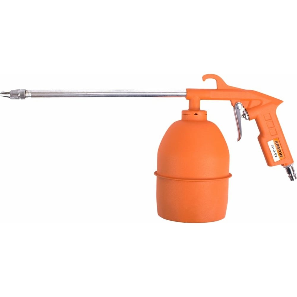 Промывочный пистолет Кратон AWG-02 3 01 02 032 служит для очистки различных поверхностей. Он оборудован нижним металлическим бачком, вмещающим в себя до 0.75 литра жидкости. Корпус пистолета изготовлен из алюминиевого сплава, благодаря чему отличается повышенной прочностью и устойчивостью к механическим повреждениям. Удлиненное сопло обеспечивает удобную работу в узких и труднодоступных местах.